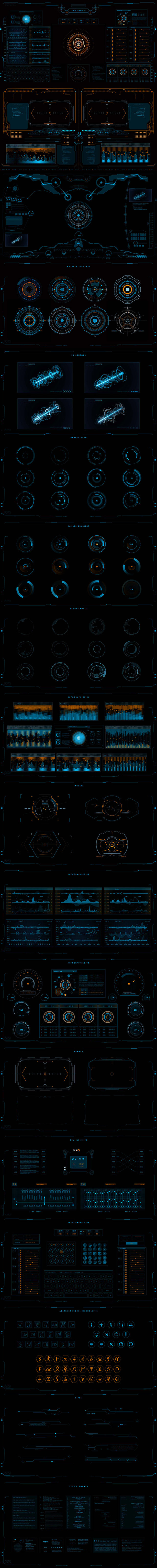 - HUD和图表元素中的现代,专业和新样式。制作技术和神秘介绍,预览游戏,跟踪和匹配移动视频等有用的元素。您可以将它们结合起来(如介绍部分)来制作出色的视频。