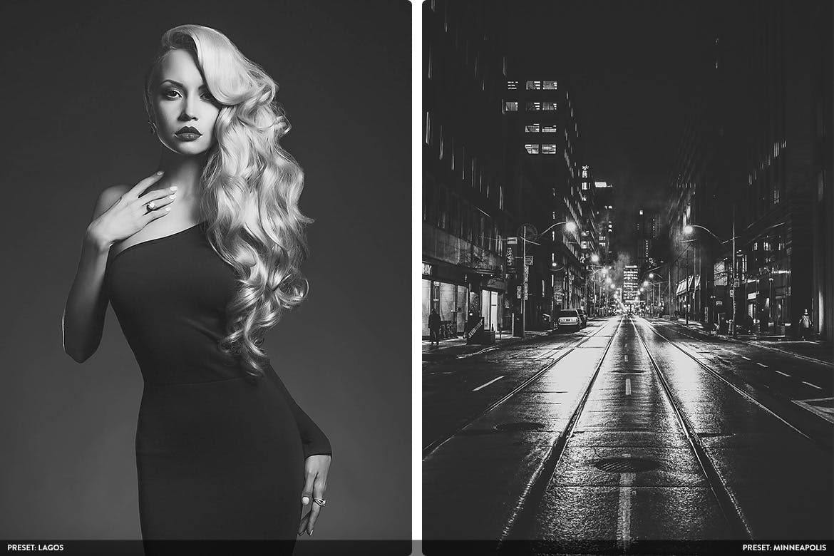 这是一个使您的创造力再上一个台阶的完美工具!有时颜色会分散注意力。它将注意力从一张精美照片的视觉构成部分上转移开来;纹理,色调对比,形状,形式和照明。拍摄黑白照片的摄影师必须学习如何使用所有这些元素来创建令人难忘的图像。现在,您可以轻松使用Adobe Photoshop的20种最佳预设,只需单击一下鼠标,即可将您的照片变成梦境般的黑白照片。在包装中,您会找到关于哑光黑白,高对比度黑白,低对比度黑白,色调黑白,陈年黑白的最佳预设!