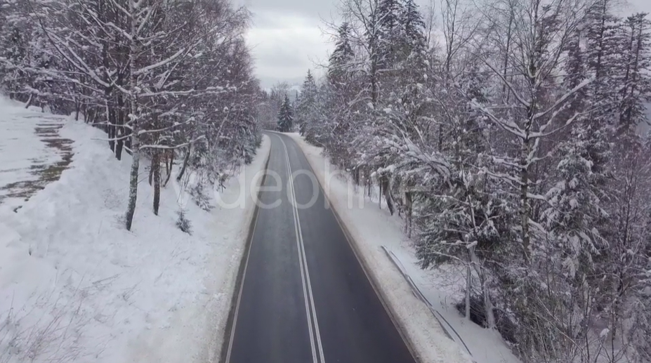 平静雪树间的道路视频素材(2194)