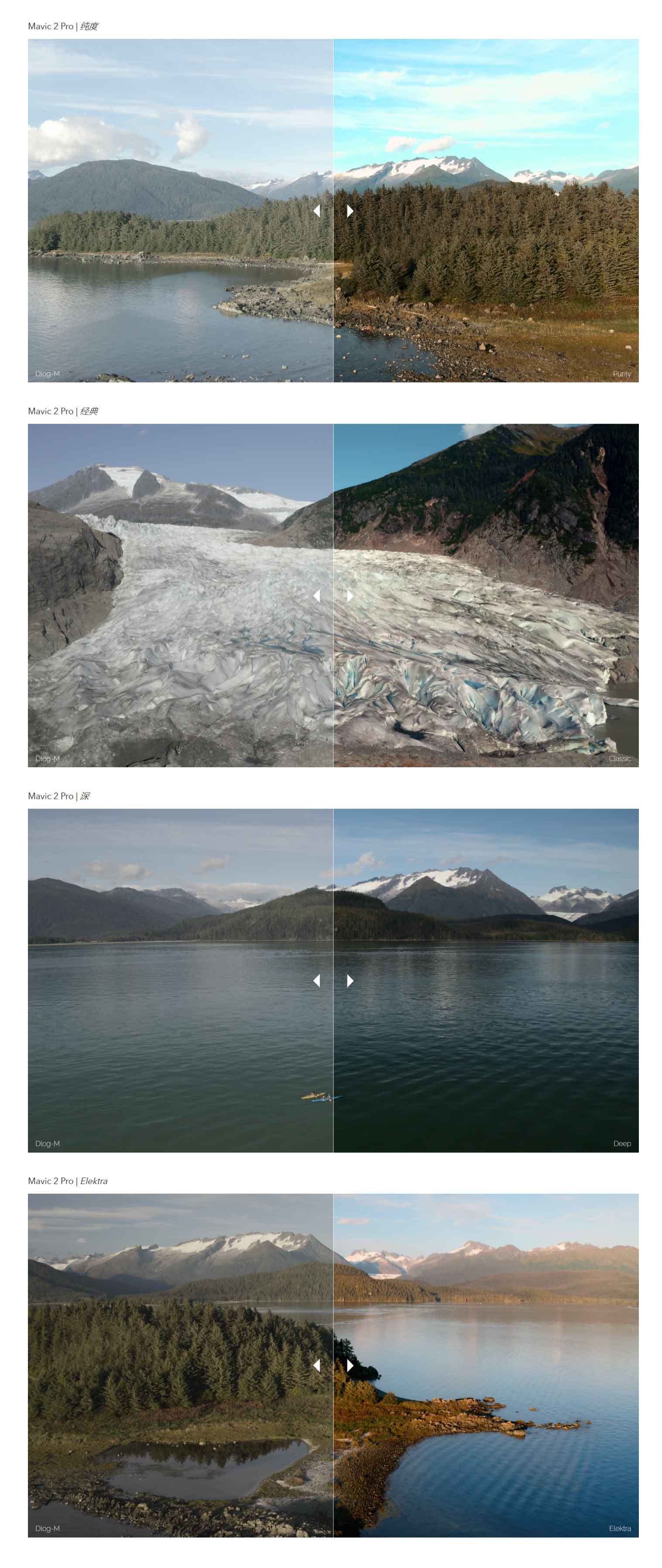 PolarPro的Elektra色彩预设提供了一系列易于使用的颜色样式,可为您的视频创建电影效果。专为在Mavic 2 Pro的DLOG-M 10-BIT中拍摄而开发,用户可以利用更多动态范围的力量来实现最高质量的播放。Elektra捆绑包提供了一系列新颖的查找表或“ LUT”,以适应任何视频项目的气氛和主题。无论是希望简化后期制作工作流程,还是只是为内容带来更多的电影品质,Elektra都将帮助您将素材栩栩如生。