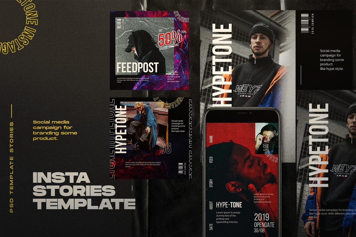 - HYPETONE : https://creativemarket.com/dirtytemp/4064555-HYPETONE-Instagram-Post-Stories