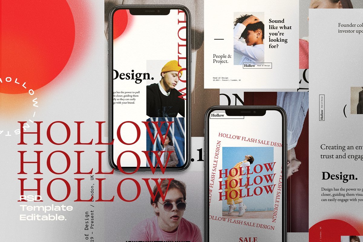 - HOLLOW : https://creativemarket.com/dirtytemp/4146125-HOLLOW-Social-Media-Template