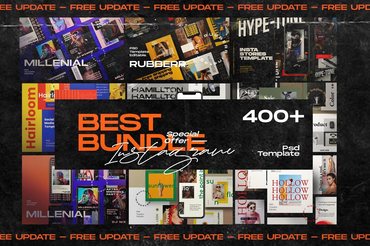 捆绑Instagram模板包,获取带有400多种社交媒体模板的商品!并且是免费更新!