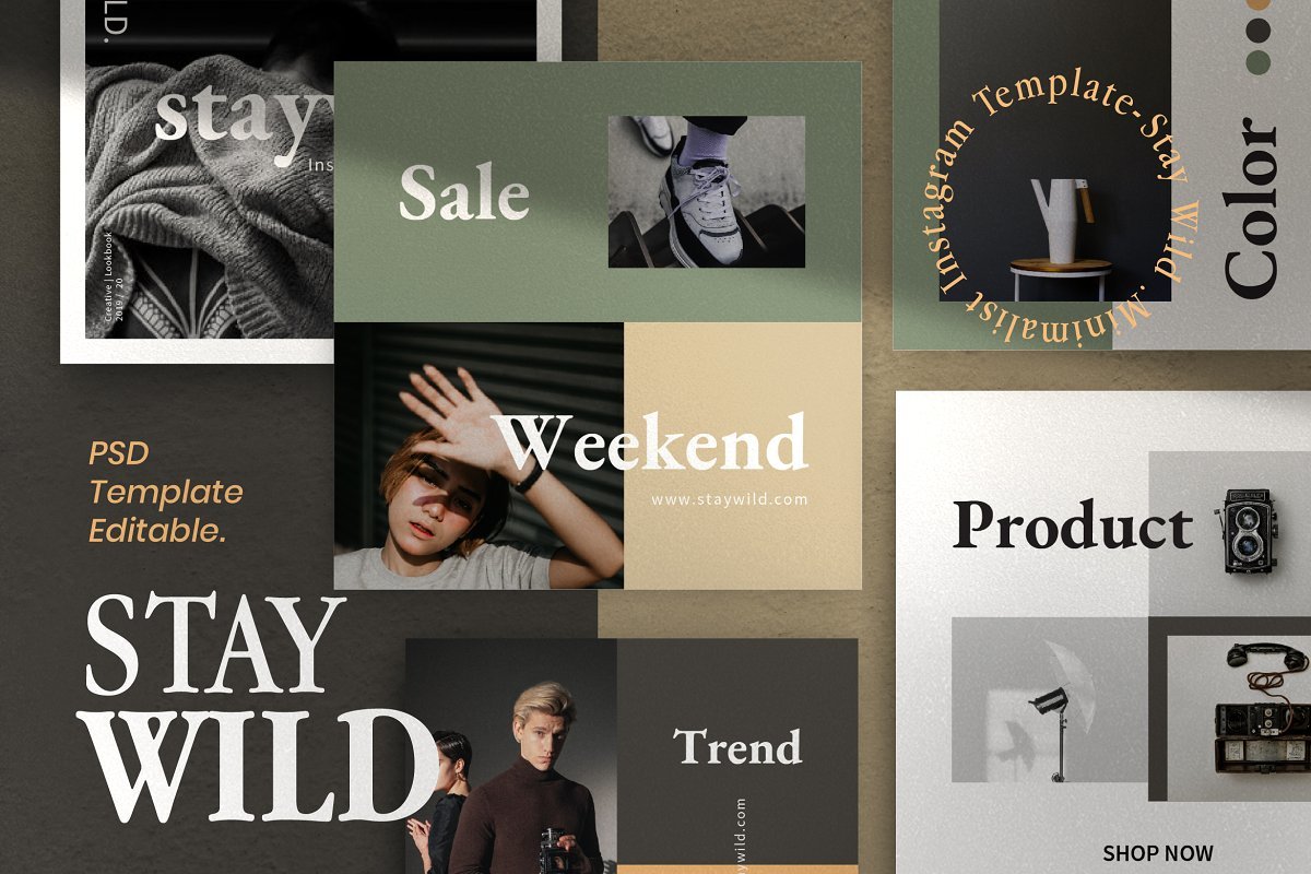 - Staywild : https://creativemarket.com/dirtytemp/4469386-Staywild-Instagram-Pack-Bundle