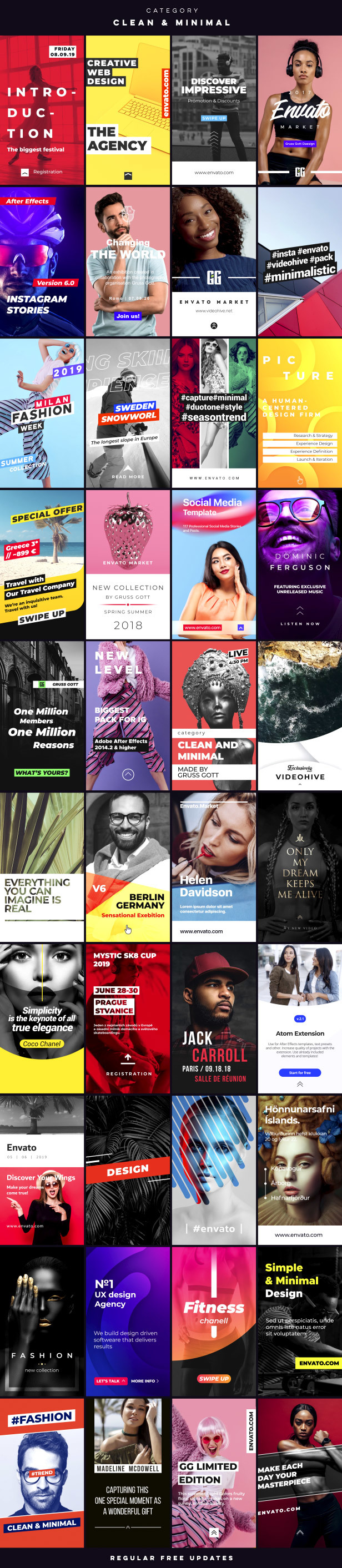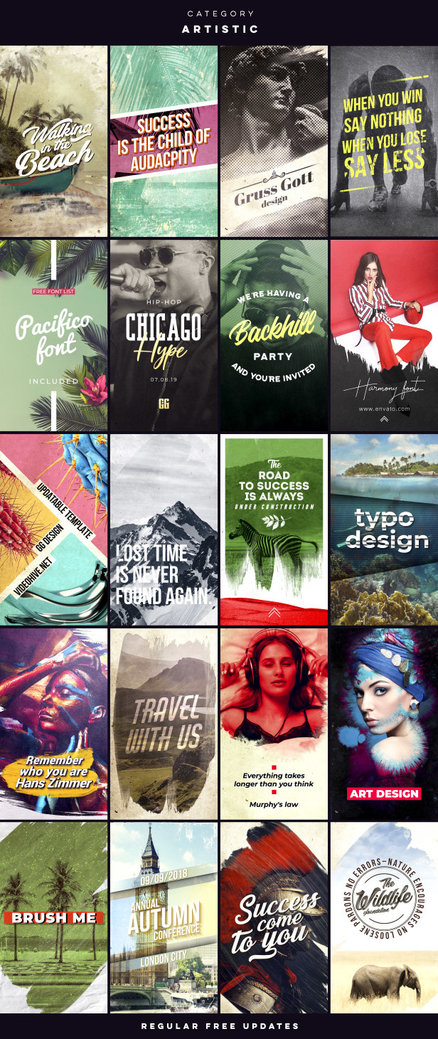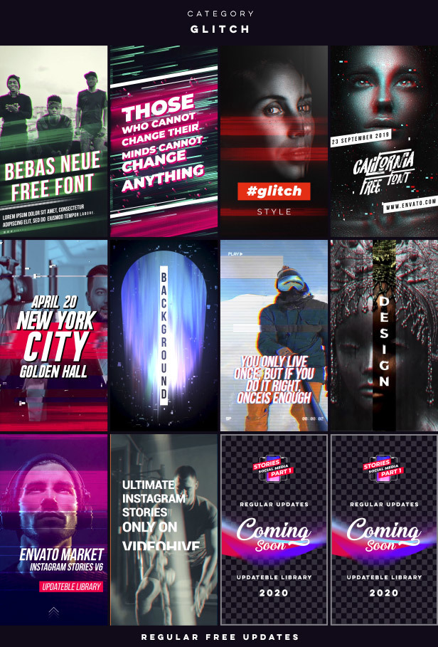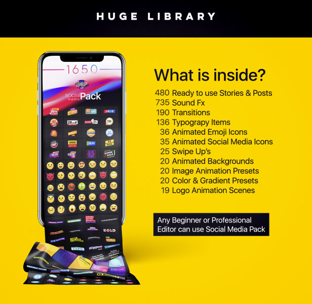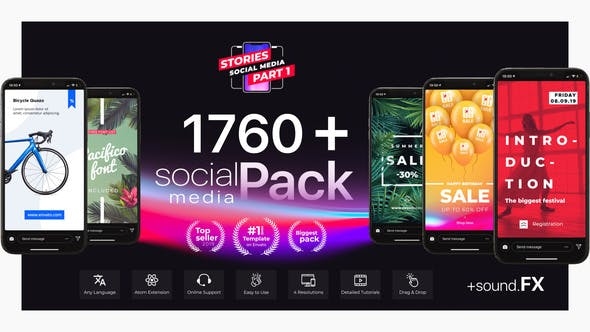 超过1760多种来自不同类别的专业社交媒体故事设计,元素和声音效果,可以帮助您在专业水平上制作出独特的视频。