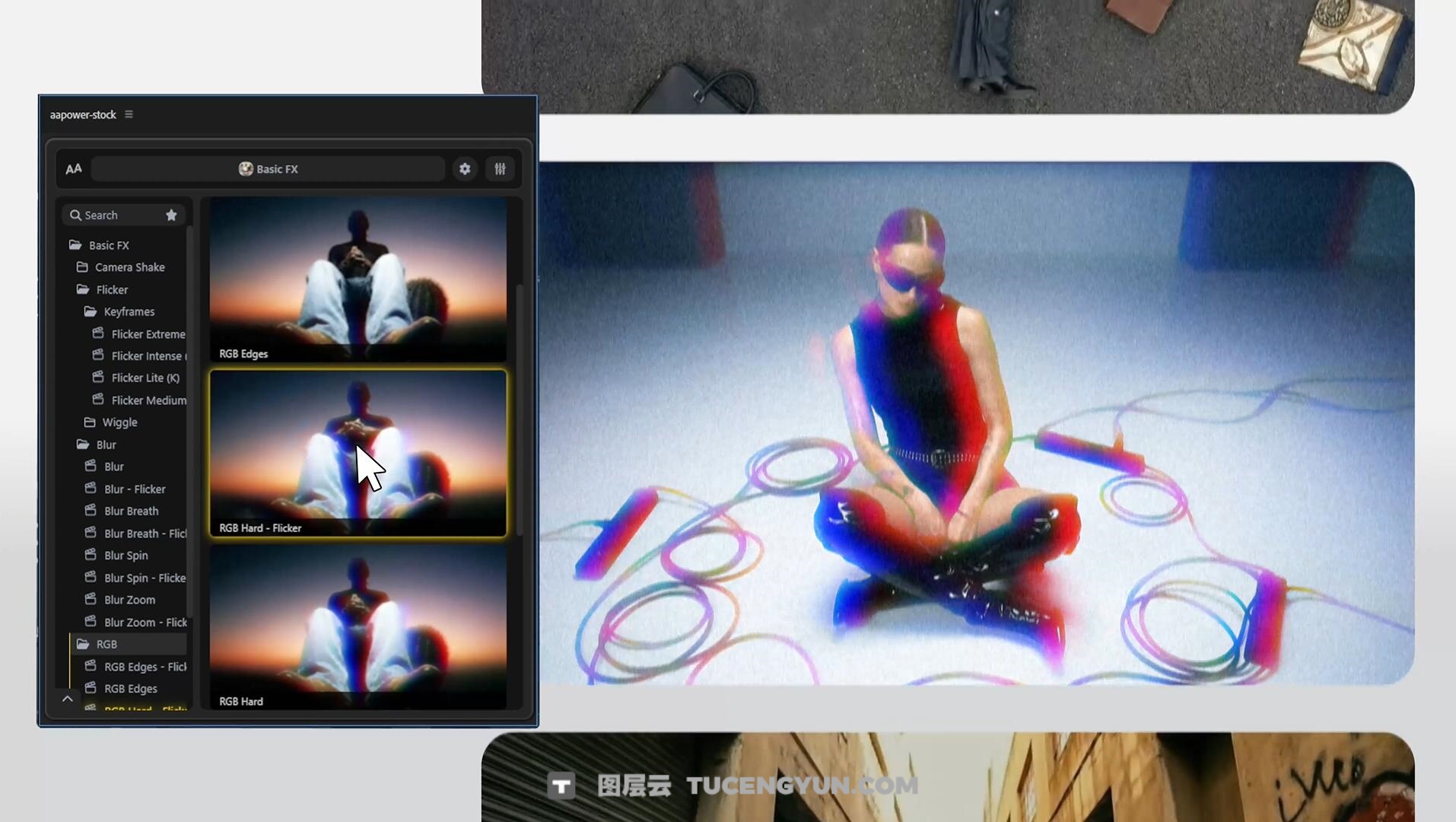 这是一套包含36种必备视觉特效的专业合集,专为日常剪辑和动态设计。这个包聚焦于几乎每个项目中使用的基本效果——摄像机震动、模糊、闪烁、鱼眼、发光和RGB失真。每个效果都采用简洁灵活的结构,便于快速应用和精准控制,避免过于复杂。