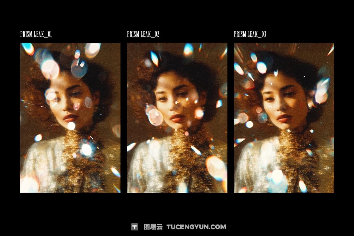 布景在画面上增添了折射光晕和彩虹散景,柔和的光晕、色彩碎片和电影般的效果。精彩片段捕捉最多戏剧性。三种叠加层变体赋予你不同的密度和形状,从零散的闪光到更浓重的条纹。