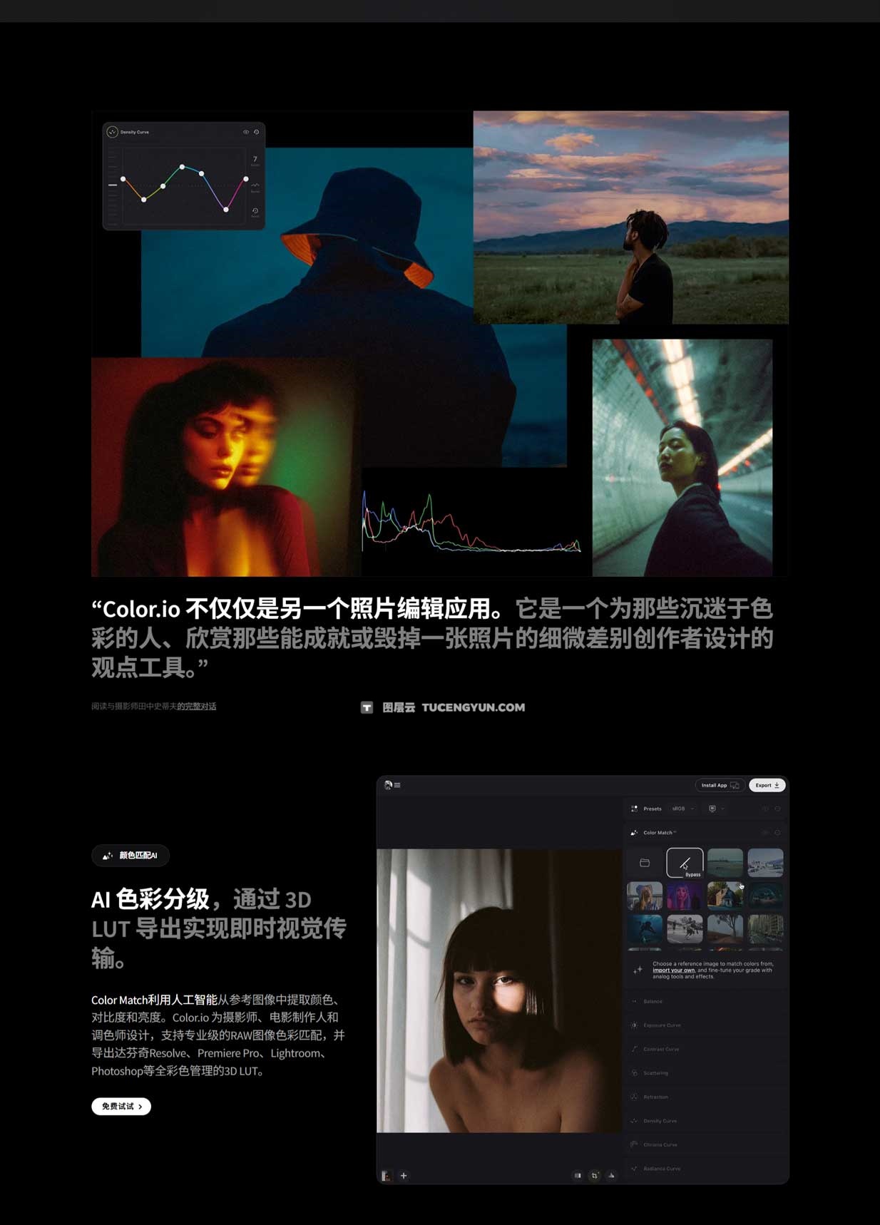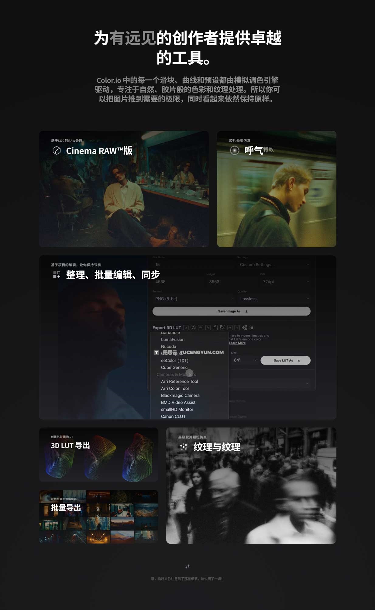 它还支持导出 3D LUT,允许用户在第三方工作流程中使用其颜色等级。 Color.io 深受领先品牌和创意人士的信赖,使用户能够打造自己独特的色彩视觉。