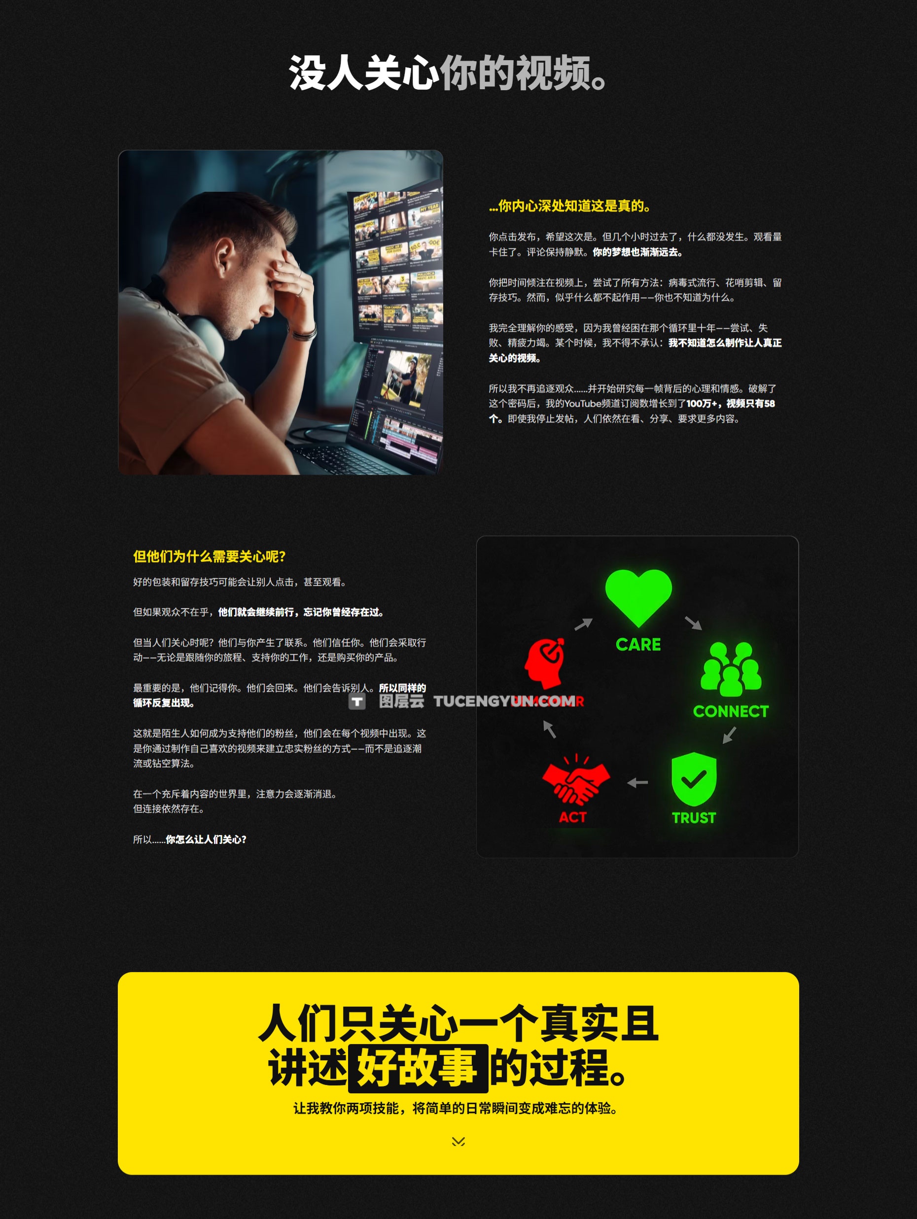 我完全理解你的感受,因为我曾经困在那个循环里十年——尝试、失败、精疲力竭。某个时候,我不得不承认:我不知道怎么制作让人真正关心的视频。