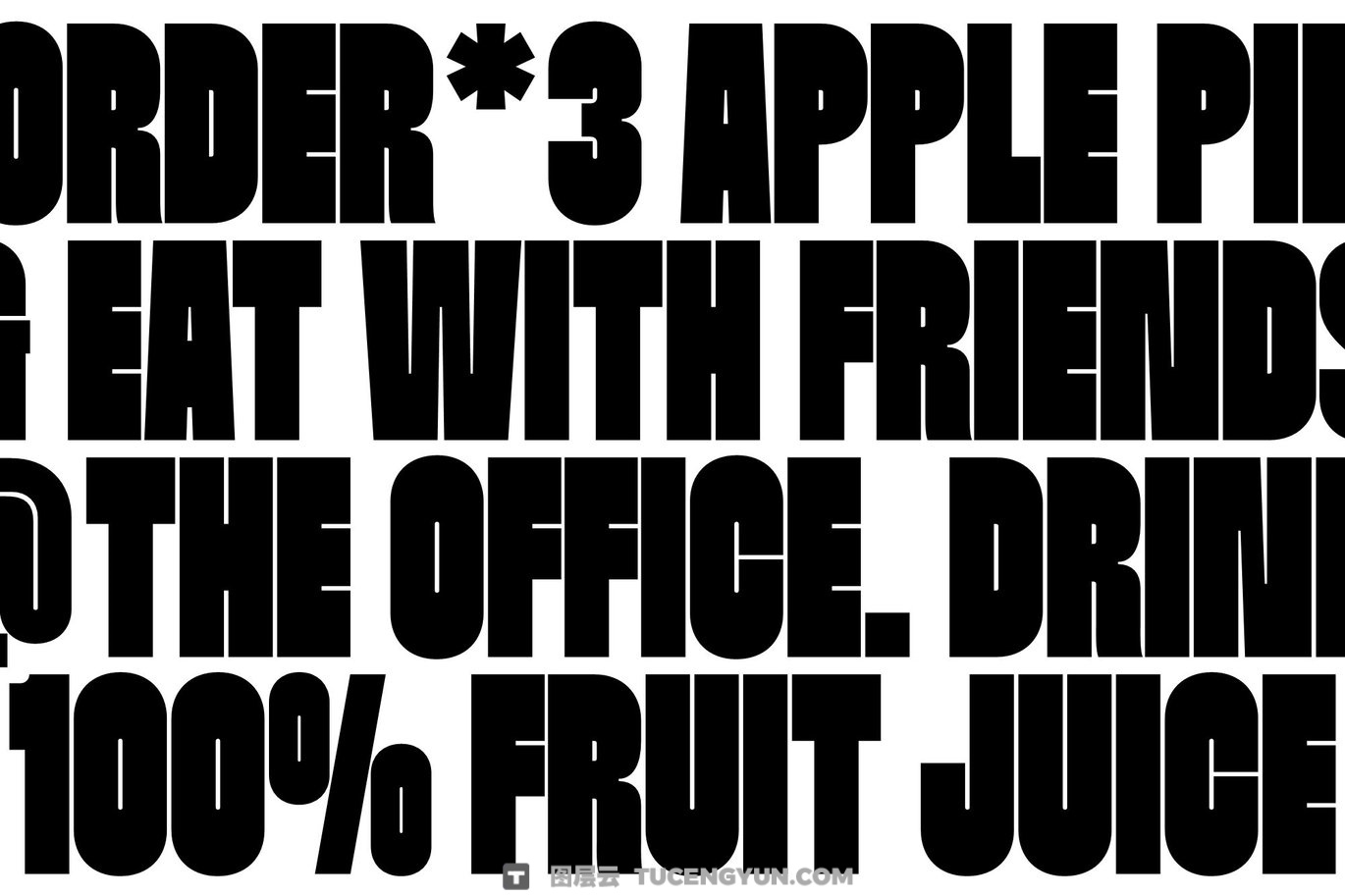 该字体有两种风格:常规和斜面,灵活可创作出稳健且动态的排版作品。