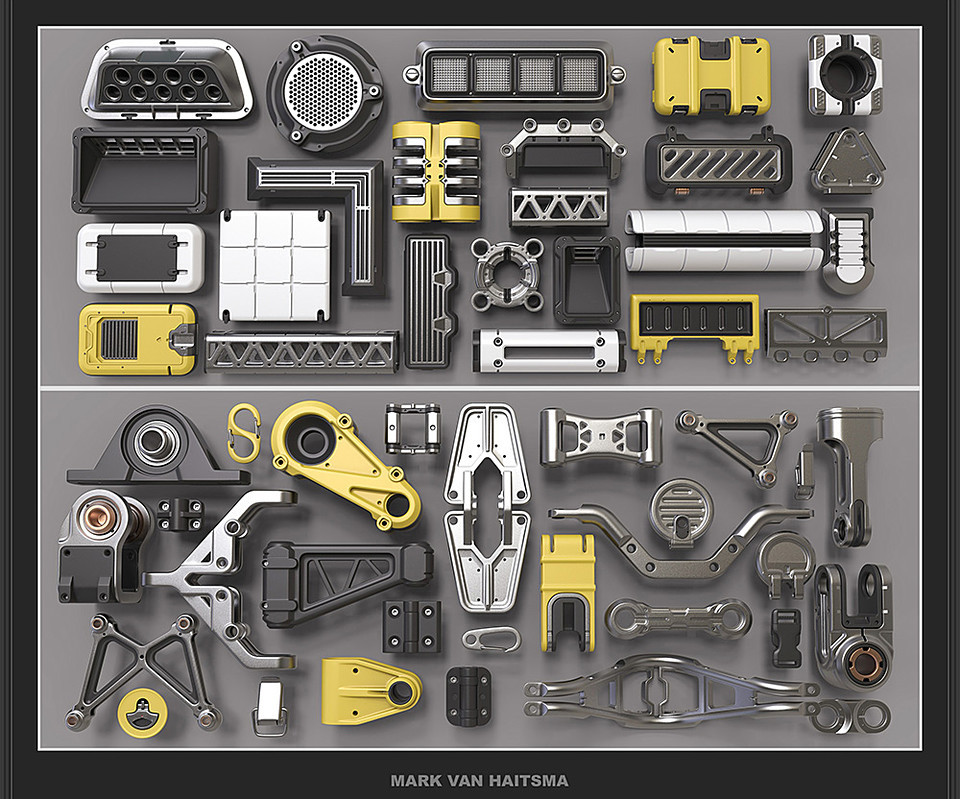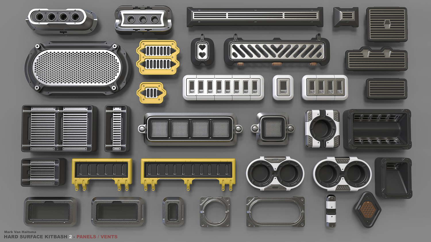 这是380多件面板,通风孔,铰链和闩锁,可以用于模型/概念的高多边形添加。