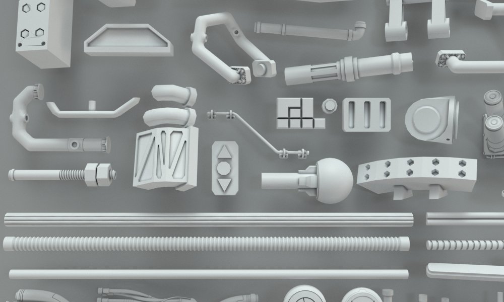 包含268个低精度和高精度机械风格相关的3D模型,包含MAX/FBX/STL/OBJ格式,包含贴图材质