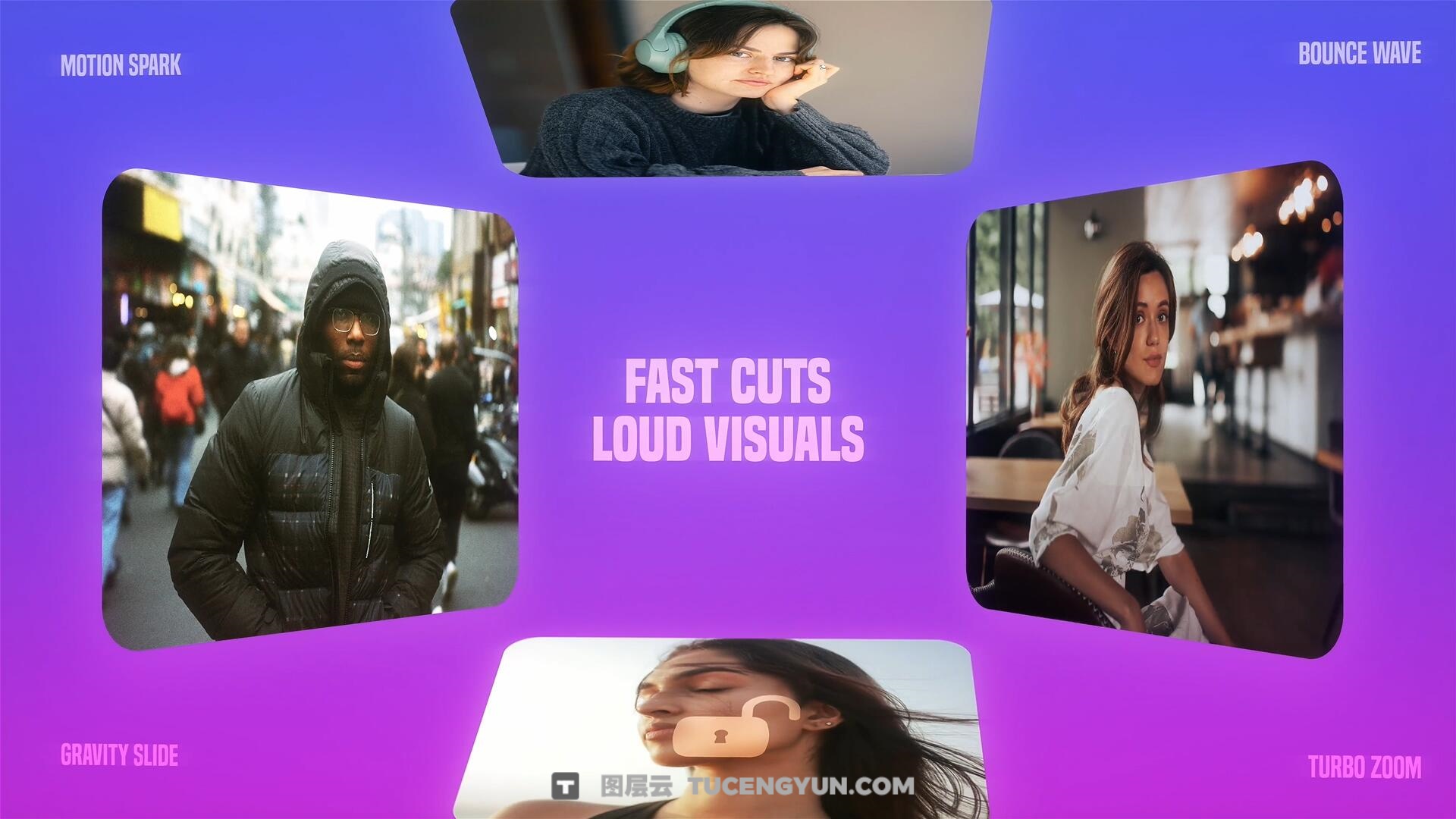 非常适合动态的YouTube开场介绍、高影响力的社交媒体故事、充满活力的活动宣传、现代时尚短片和强有力的品牌公告。多功能且组织良好的结构确保了即使是初学者也能获得无缝的编辑体验。只需几次点击,即可自定义颜色、文字和媒体,完美契合品牌独特的氛围。