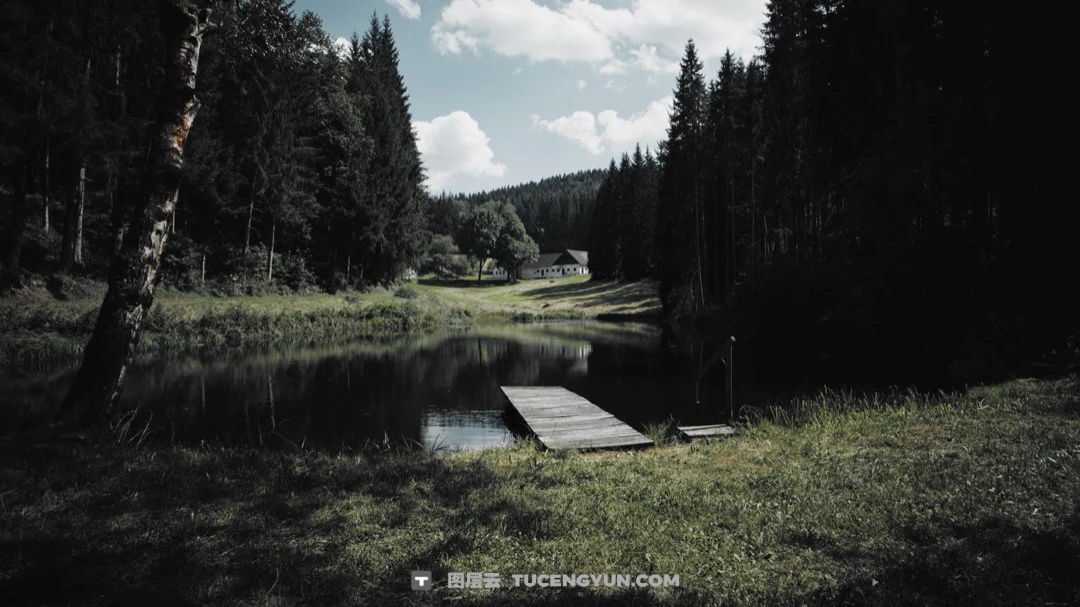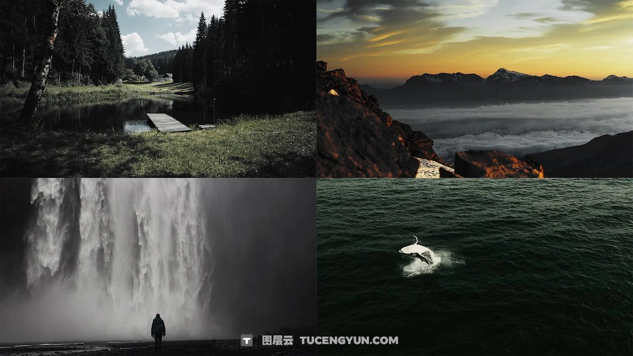 捕捉北欧风景的宁静色调,重点是深绿色和柔和的大地色调。
