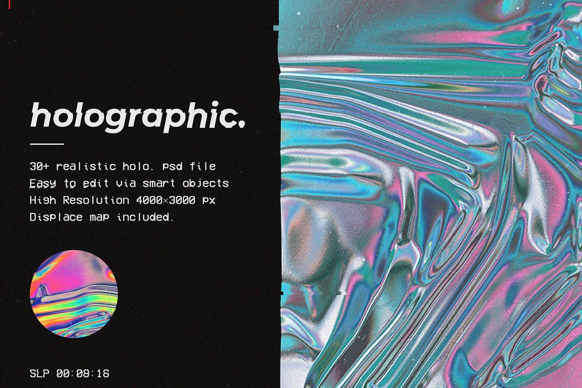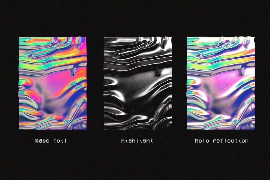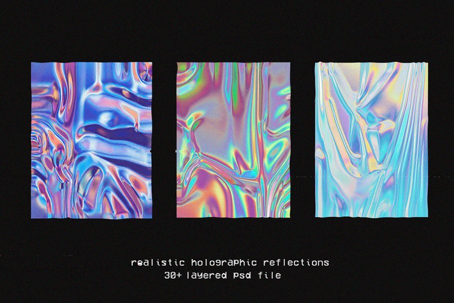 30种彩色全息箔纹理,具有逼真的光线反射和位移贴图。