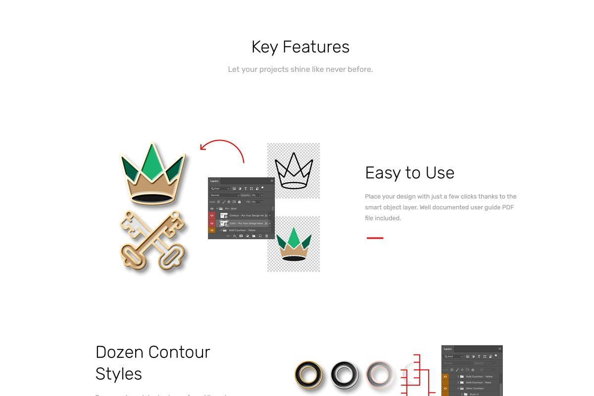 我们的徽标针珐琅样机包使您的演讲更具吸引力!以逼真的方式显示您的徽标或插图设计!为了给您一个更好的开始,我们精心制作了一些预制的场景和模板以供使用。只需将设计替换到智能对象层中,单击保存即可完成。该包还包含20个高质量纹理,您可以将其用作背景。
