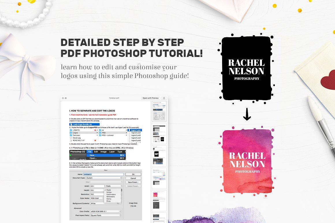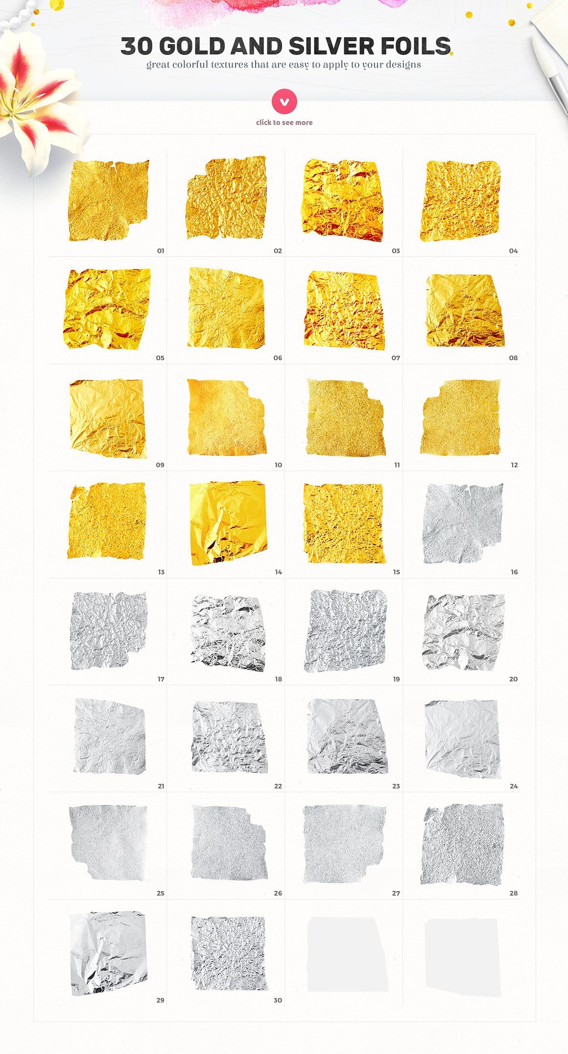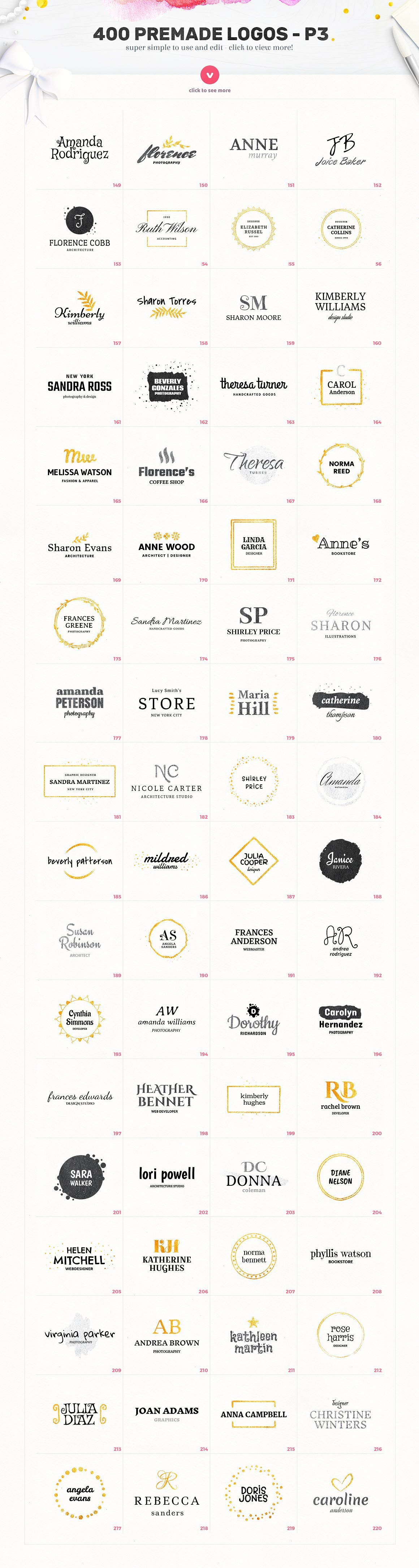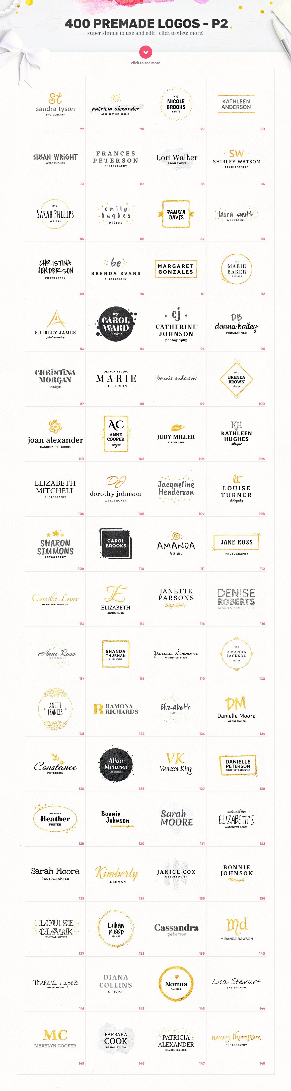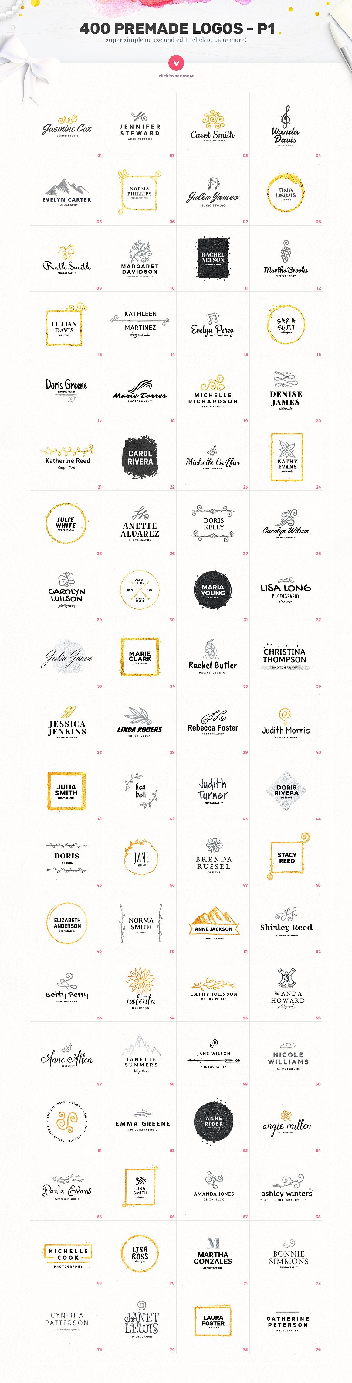 这个素材包整理了400枚拿到即用的 Logo,32个水彩纹理和30个金色、银色的文本效果。