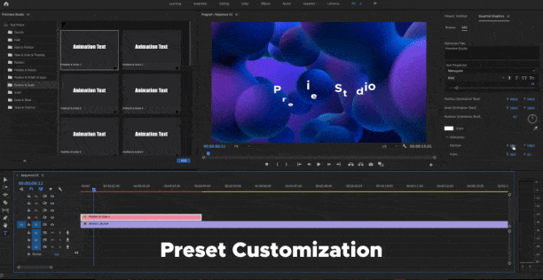 在1000首映专业电影文本预设首映Studio插件内临 运动文本预设包含1000多准备使用的礼物,它可以帮助你让你的独特的视频上的专业水平。解码,淡入淡出,位置,旋转,缩放,倾斜和跟踪–制作精美动画所需要的不只是这些。每个类别都包含不同的元素,并创造出独特的时尚外观。只需通过拖放方法即可一键套用预设。