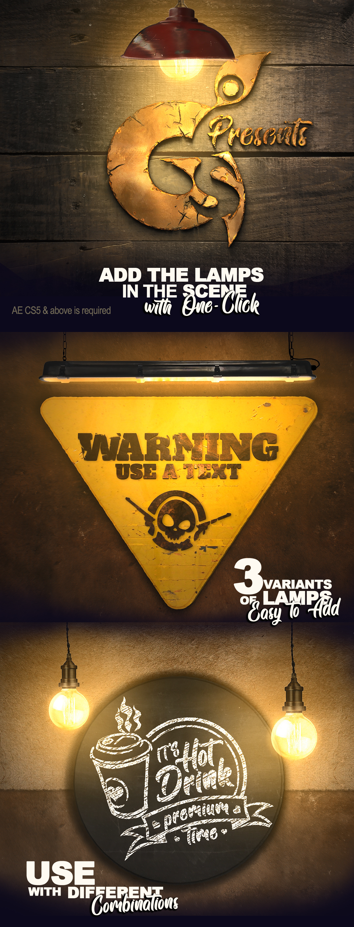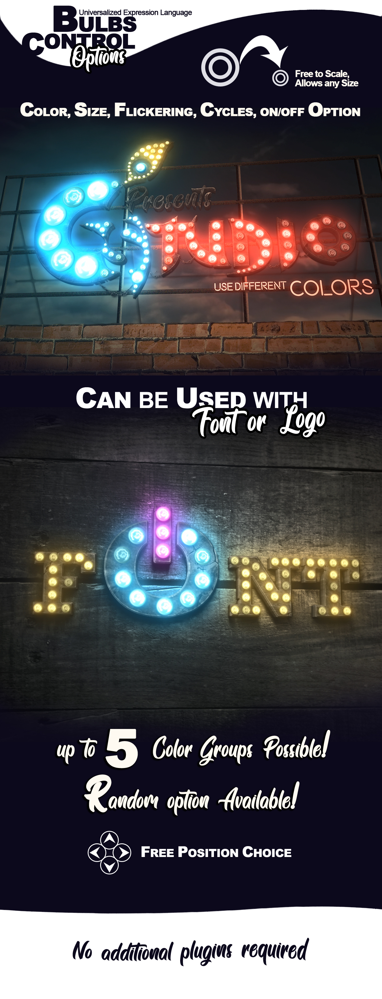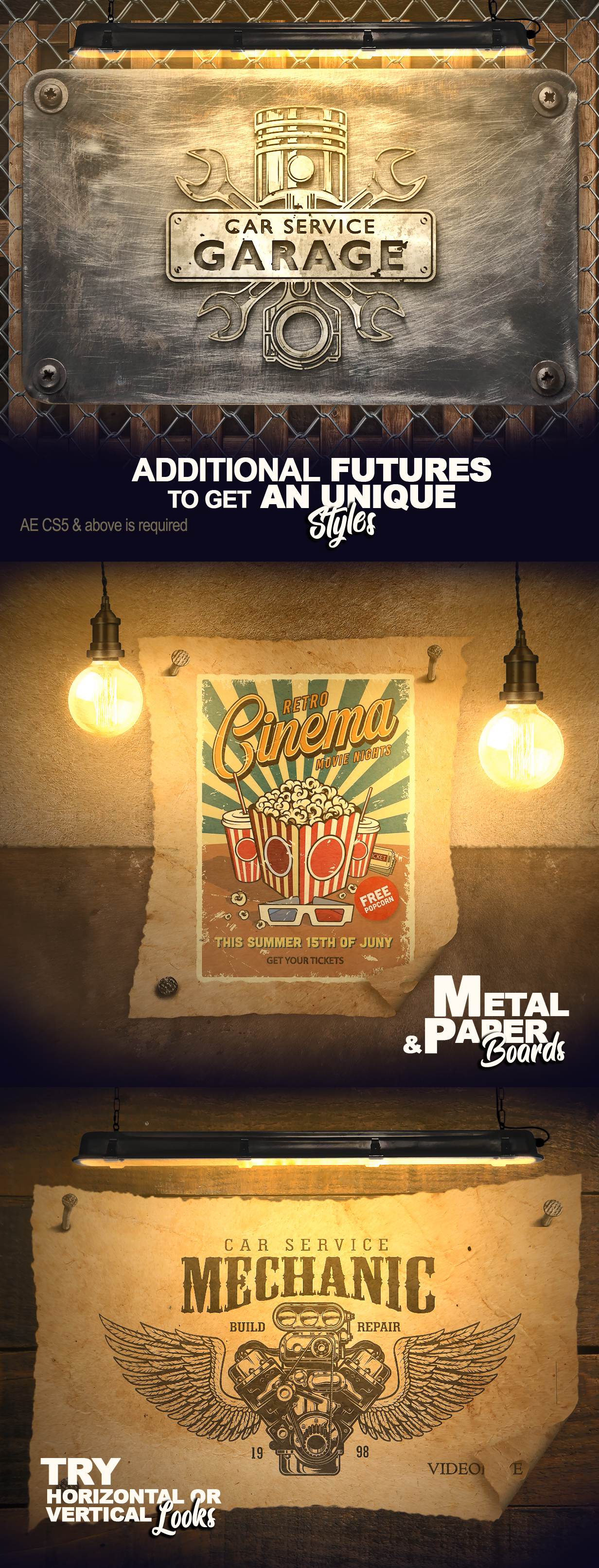 Signs Kit Creator – After Effects项目–与文本和徽标一起使用。视频模板提供了大量制作单个徽标动画的可能性。它包括霓虹灯,跑马灯灯泡,背光方式以及许多创建徽标独特表面的选项。专业设计的标志,为您的业务,工作室,咖啡馆,书,游戏或特殊事件。