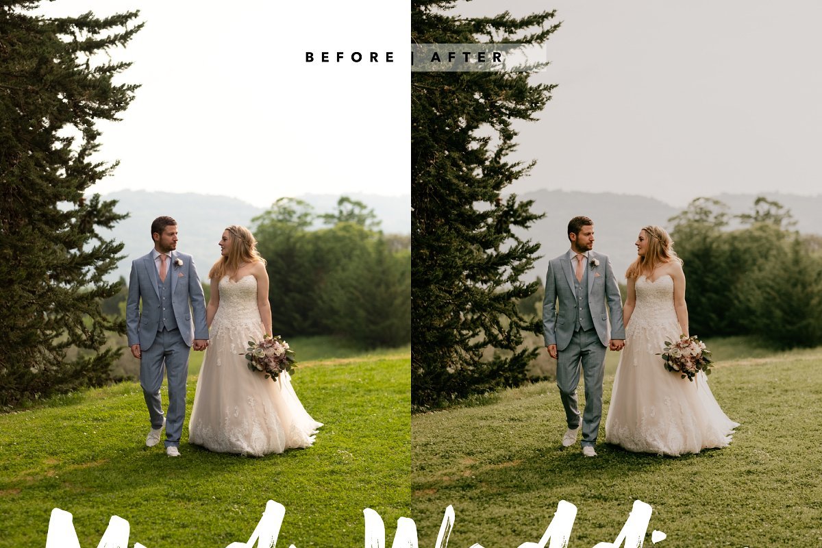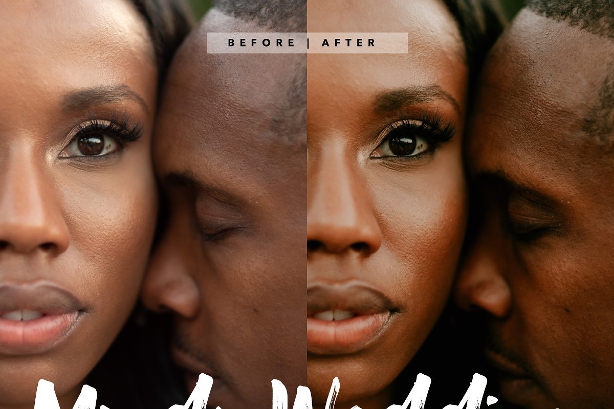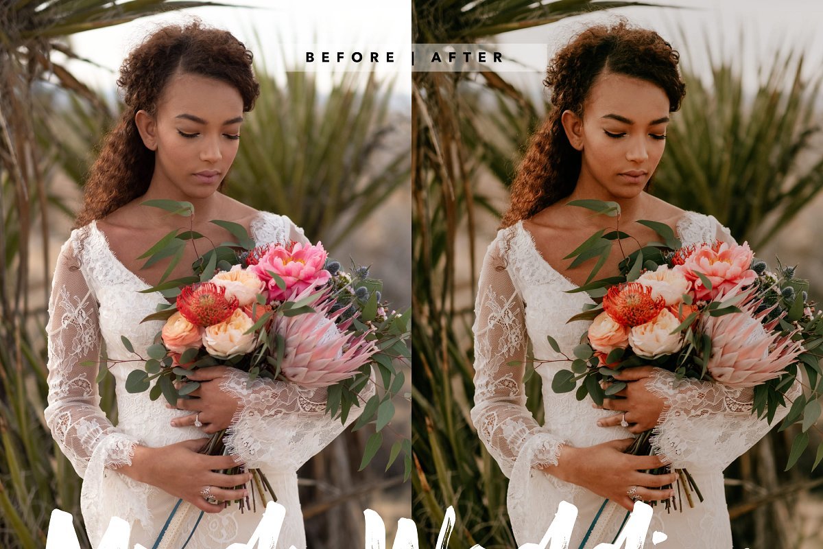 预设色调为泥土色和暖色。这个预设几乎是“一键式”享受。此Lightroom Preset可以帮助您为室外和室内婚礼获得更好的图像。