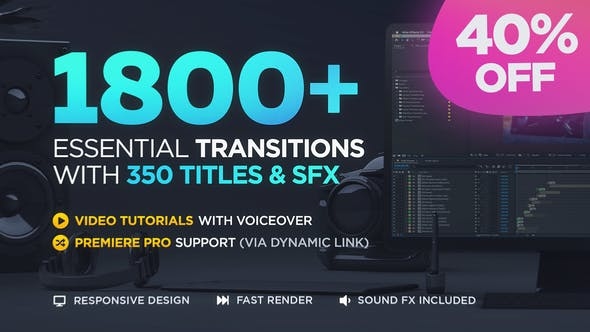 该项目不断发展!它开始时只有70个过渡,现在我们提供1800个预设,分为8个不同类别,并提供350个标题,较低的三分之二和SFX的奖励。在此更新中,我们添加了400个带有Sound FX的故障转换 –如果您已经购买了此软件包,则可以免费下载它们!这也意味着,一旦您购买了该项目,便可以免费获得所有将来的更新!