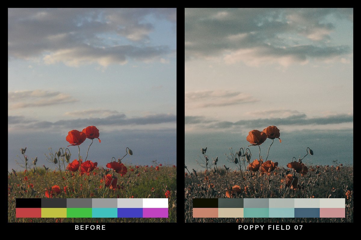罂粟花田 (10种预设)-令人难忘且怀旧。这些Lightroom预设给您带来平静的复古外观。