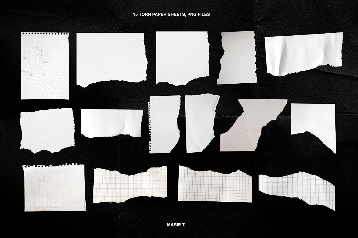 15张残缺的纸张,300 DPI