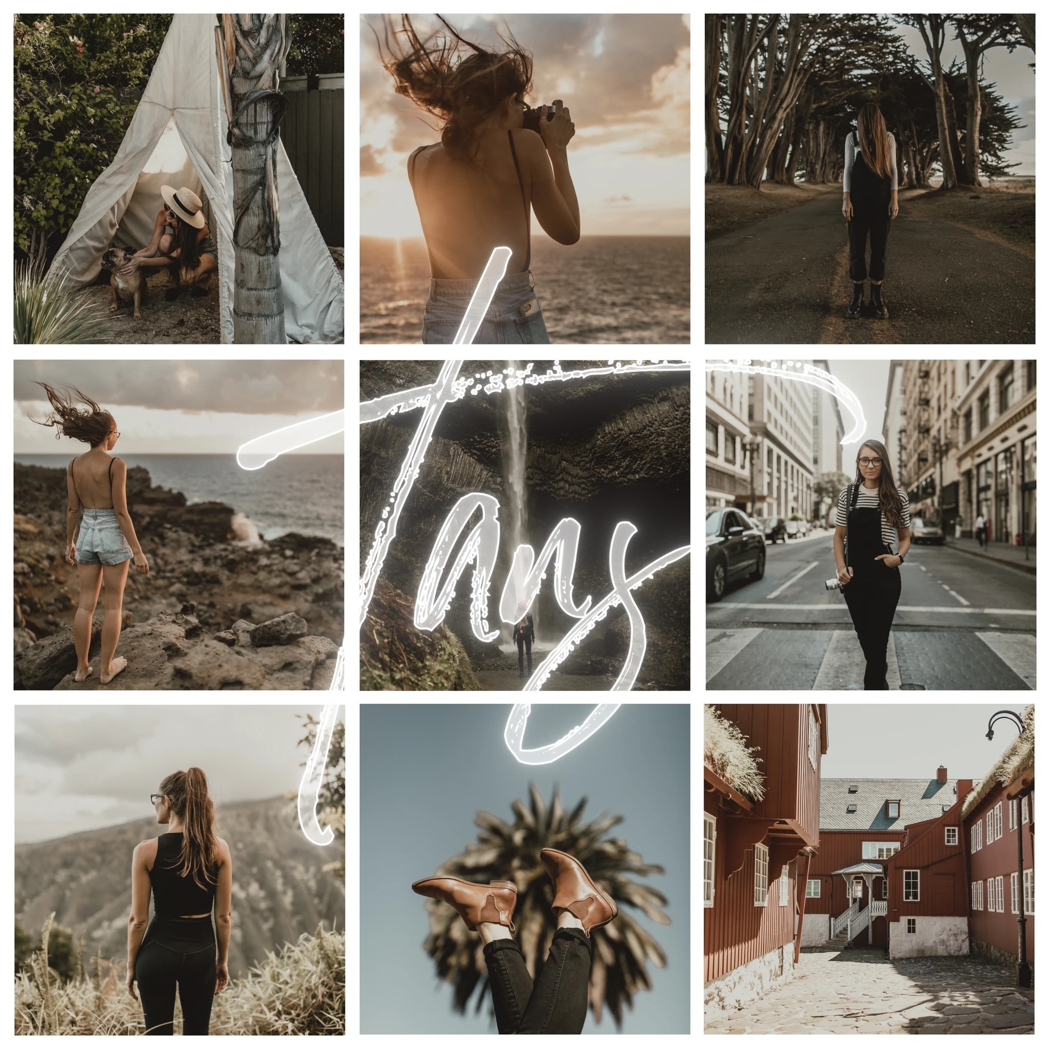 棕褐色是您的终极生活方式博客作者预设。此组合具有暖色调以适合您阳光充足的环境,适用于各种照片。在这种环境下,绿色,棕色和红色都很繁盛。