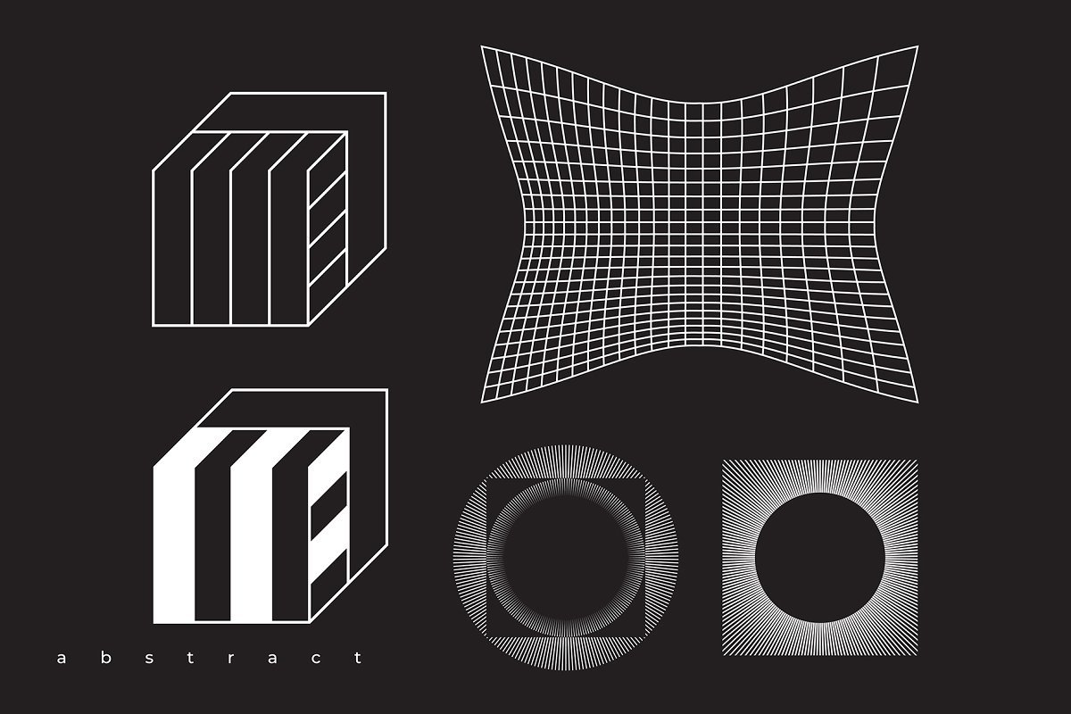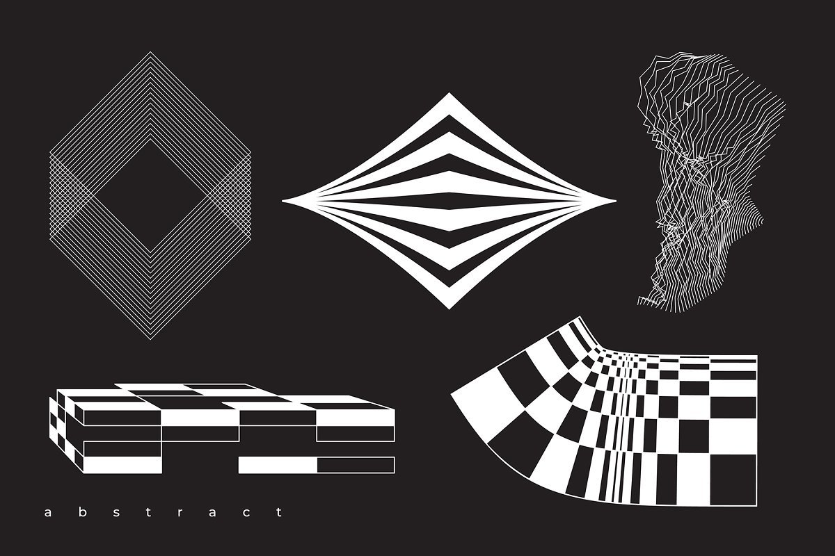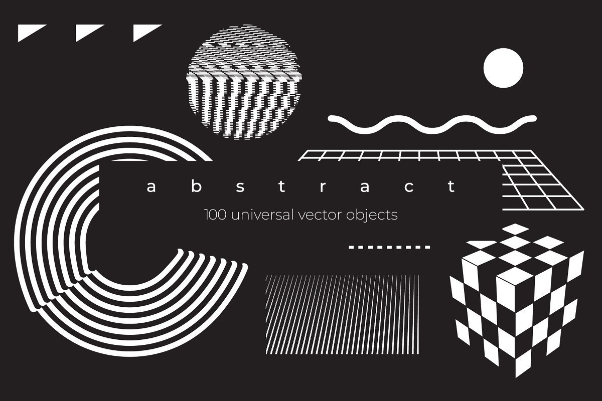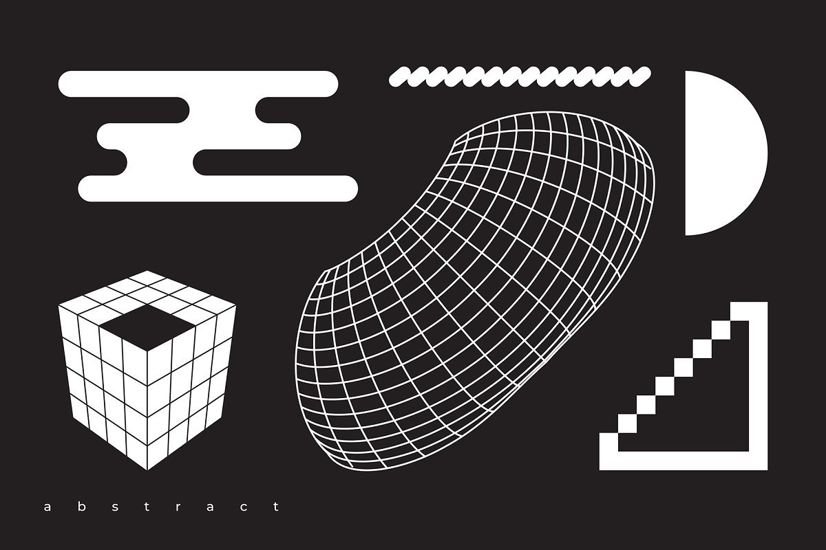 集合“ Abstract。100 Universal Vector Objects”是一组基于平滑过渡,变形,混合,3D效果和其他有趣效果的高质量100个几何形状的唯一集合。该项目中的对象将使您的设计获得认可和独特性。您可以将此形状用于T恤,应用程序界面,海报,明信片,图案,徽标设计,名片,品牌书籍,动画,网络,衣服,摄影等。