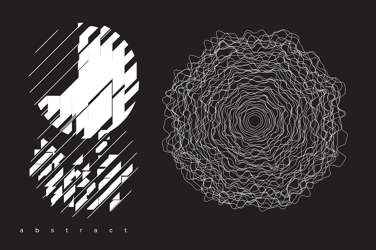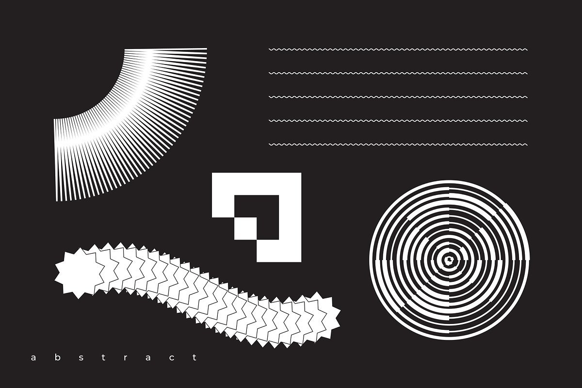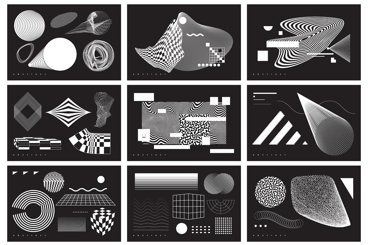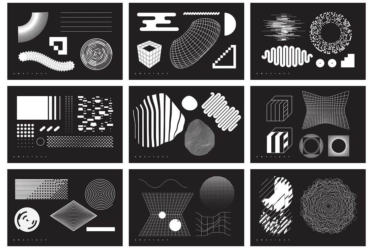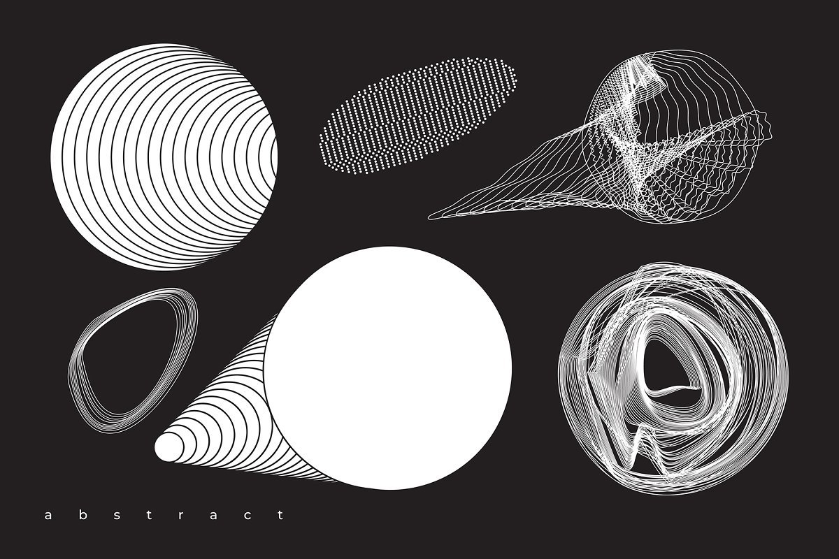 集合“ Abstract。100 Universal Vector Objects”是一组基于平滑过渡,变形,混合,3D效果和其他有趣效果的高质量100个几何形状的唯一集合。该项目中的对象将使您的设计获得认可和独特性。您可以将此形状用于T恤,应用程序界面,海报,明信片,图案,徽标设计,名片,品牌书籍,动画,网络,衣服,摄影等。