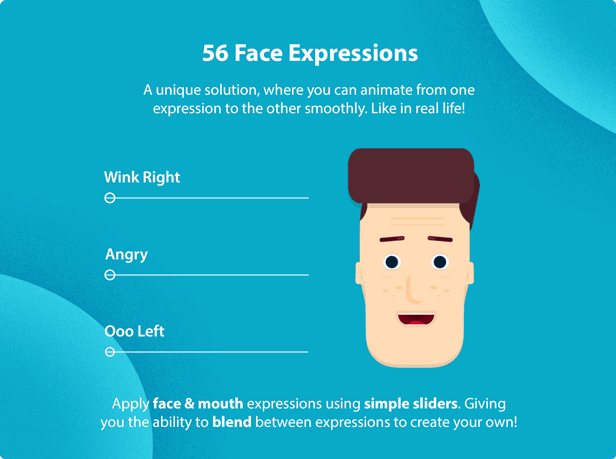 使用简单的滑块应用面部和嘴部表情。使您能够在表达式之间融合以创建自己的表达式!