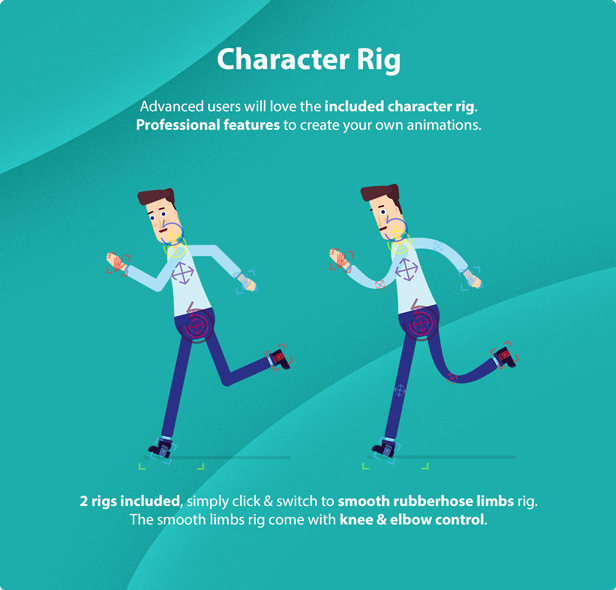 包括两个装备,只需单击并切换即可平滑Rubberhose肢体装备。光滑的四肢装备带有膝盖和肘部控制功能。