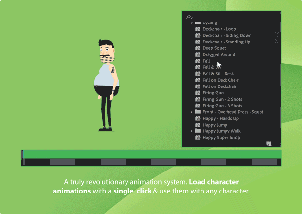 真正革命性的动画系统。单击即可加载角色动画,并将其与任何角色一起使用。