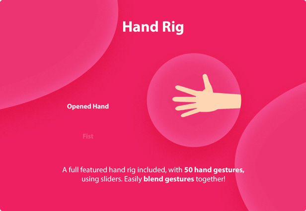 修改手的大小并使用随附的手绑定在50个手姿势之间进行混合。