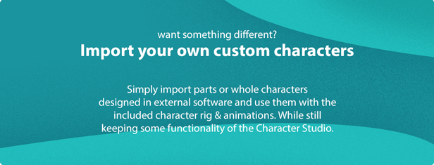 只需导入在外部软件中设计的部分或整个角色,然后将其与随附的角色装备和动画配合使用。同时仍保留Character Studio的某些功能。
