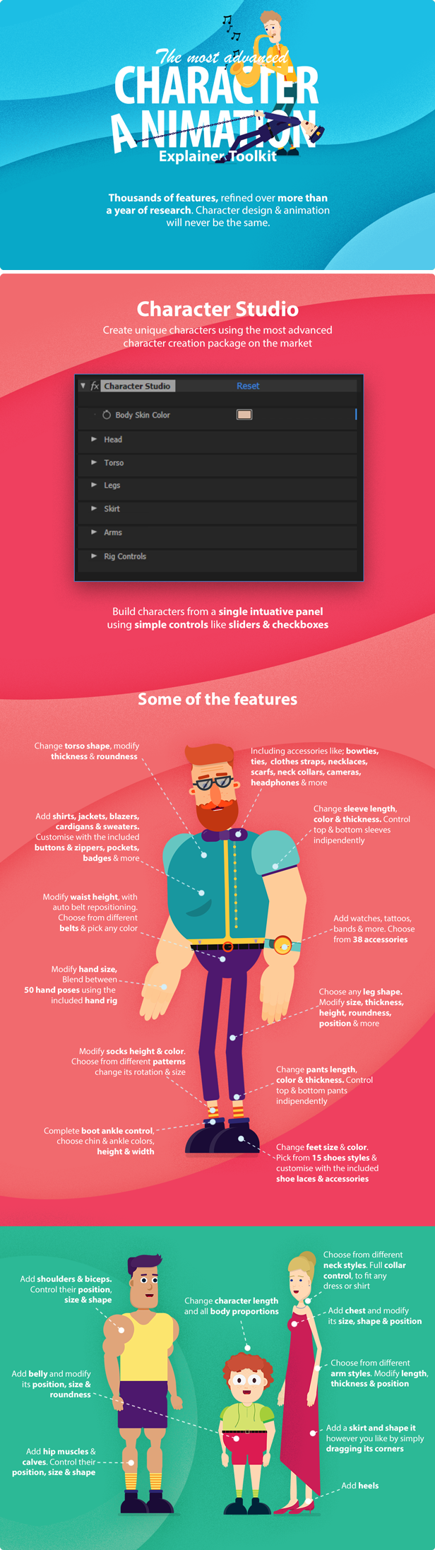高级用户将喜欢随附的角色装备。专业功能可创建自己的动画。