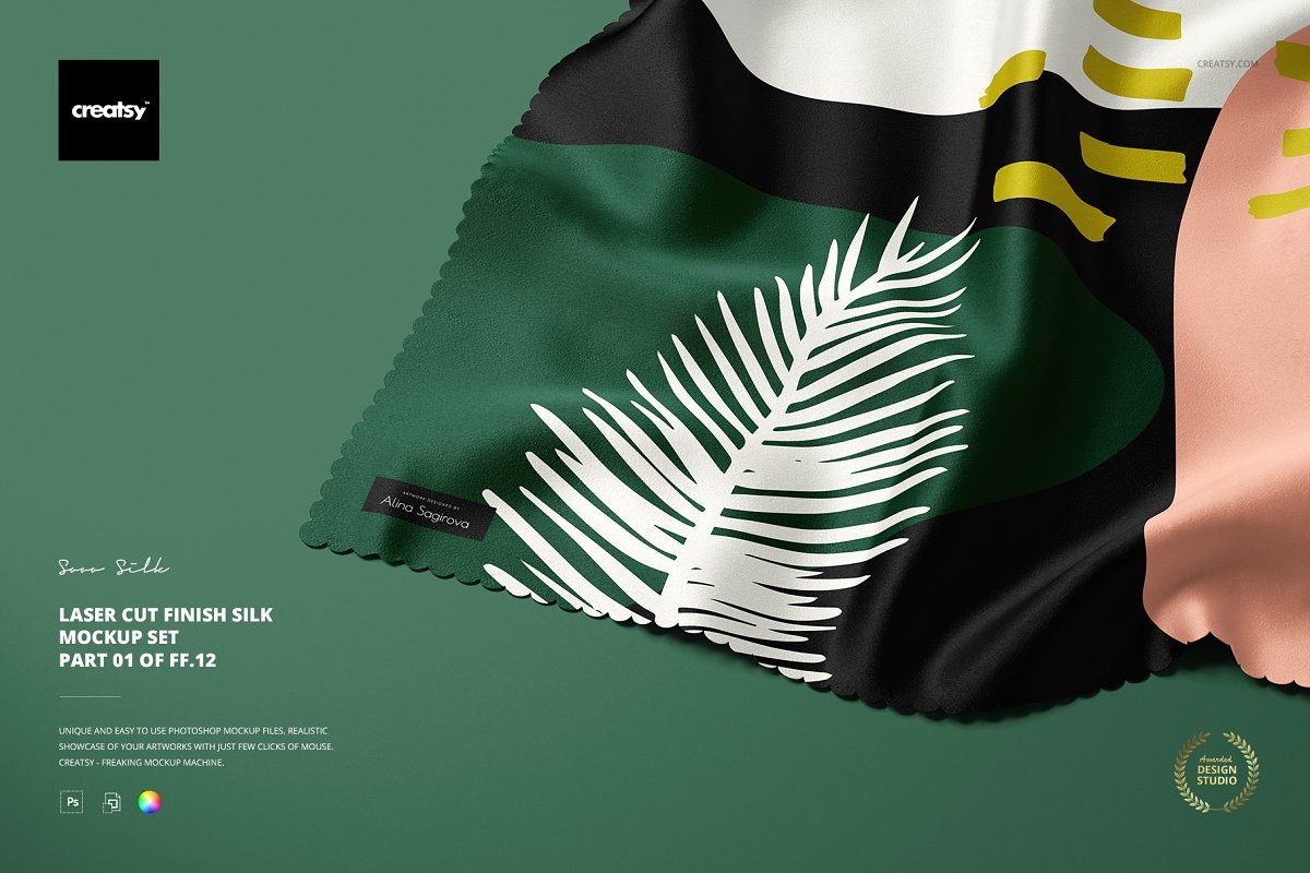 通过编辑智能对象和颜色图层,激光切割完成的丝绸模板层可编辑的.psd文件分层,可以展示您的自定义设计。