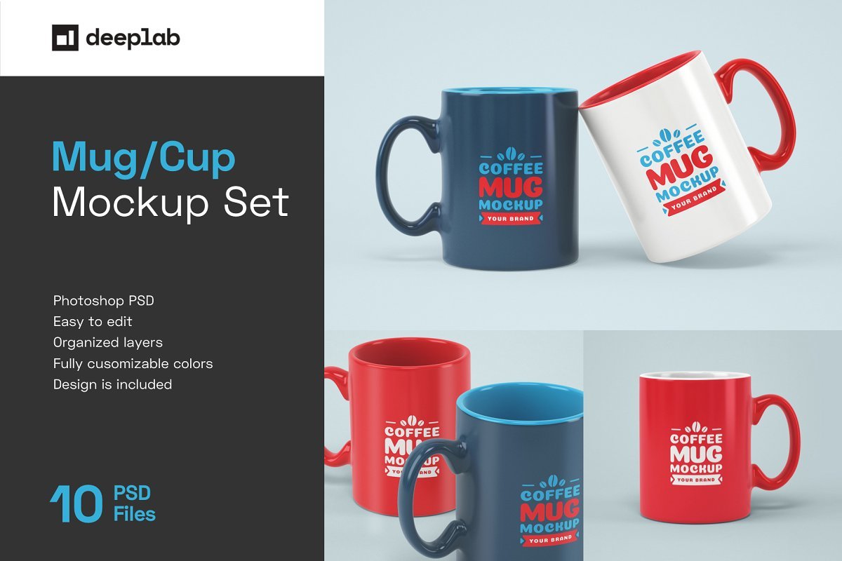 this在此完美的马克杯样机套件上以更有效的方式展示您的设计,用于咖啡店,快餐店,早餐咖啡馆,饮料架,茶,汤等的品牌设计。此样机套件是具有10个视图的高级模型,包括10个组织良好的PSD文件。通过智能对象轻松个性化您的咖啡,茶或其他品牌设计,并将背景更改为任何颜色。