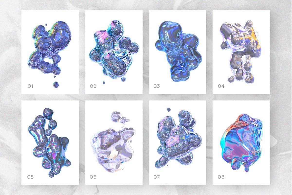 FOOL SHAPES彩色版本vol 1是一组23种3D孤立形状和20个背景的灵感,其灵感来自皱纹的箔。它们以高分辨率提供,因此可以用于印刷(包装,海报,卡片,纺织品设计)和网络(横幅,墙纸,背景)。