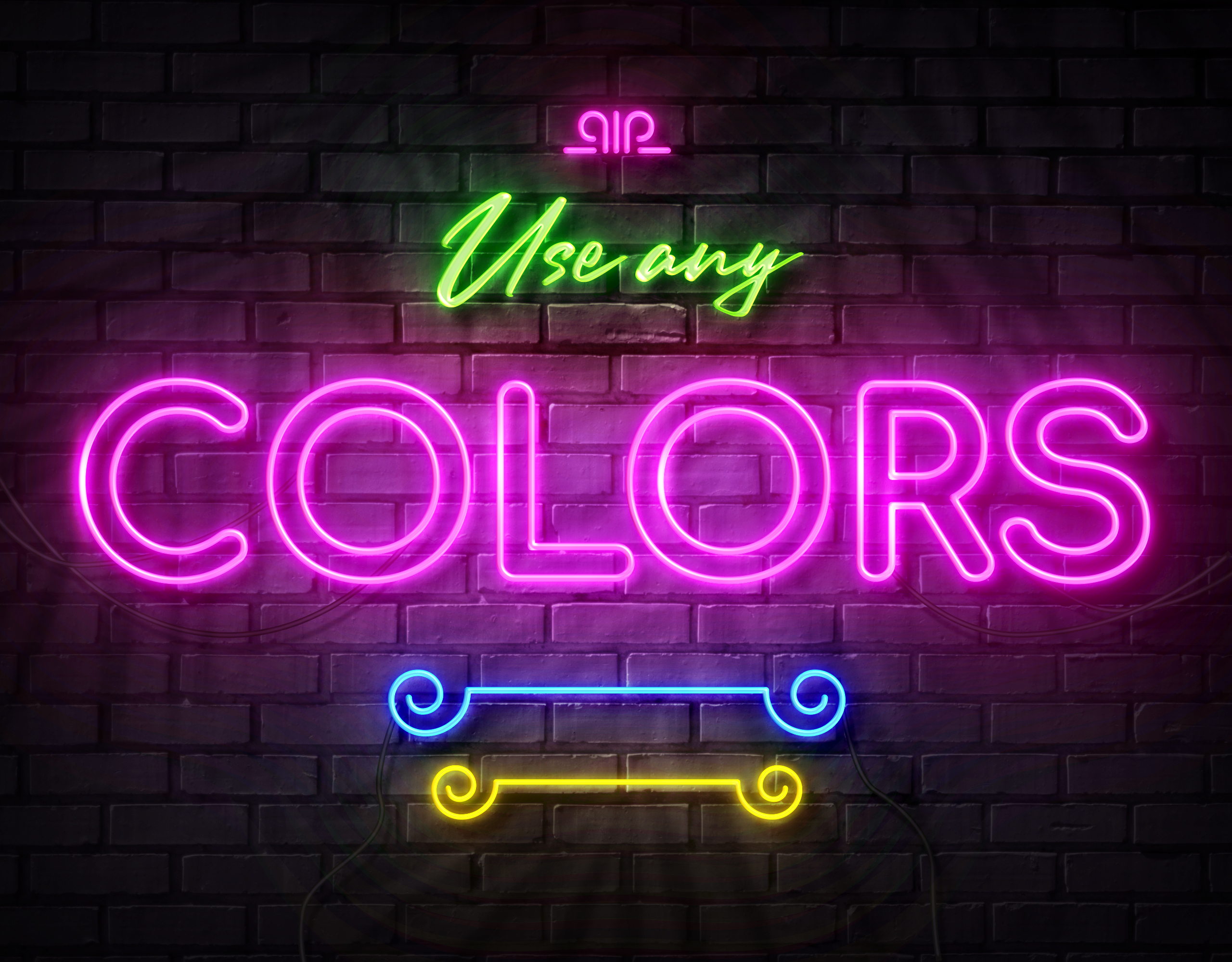 您可以为文本,徽标,装饰元素选择任何颜色。这些颜色将用于霓虹灯管和发光!这简单)