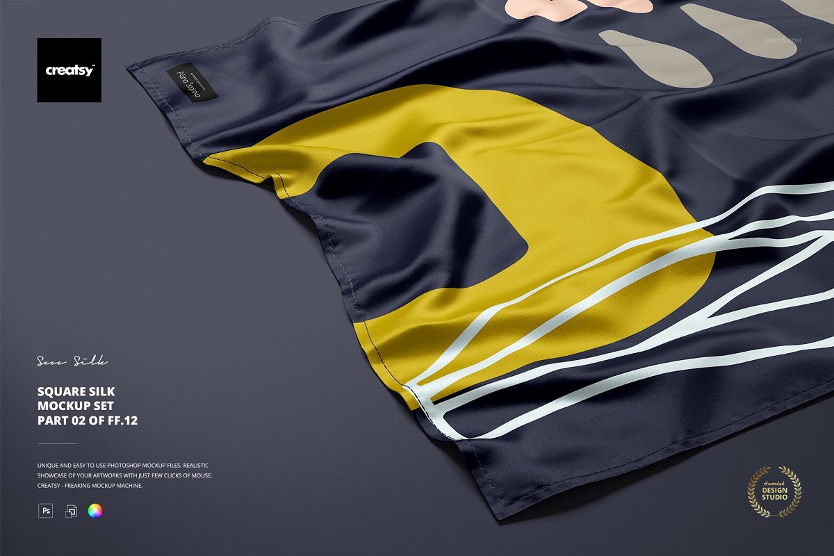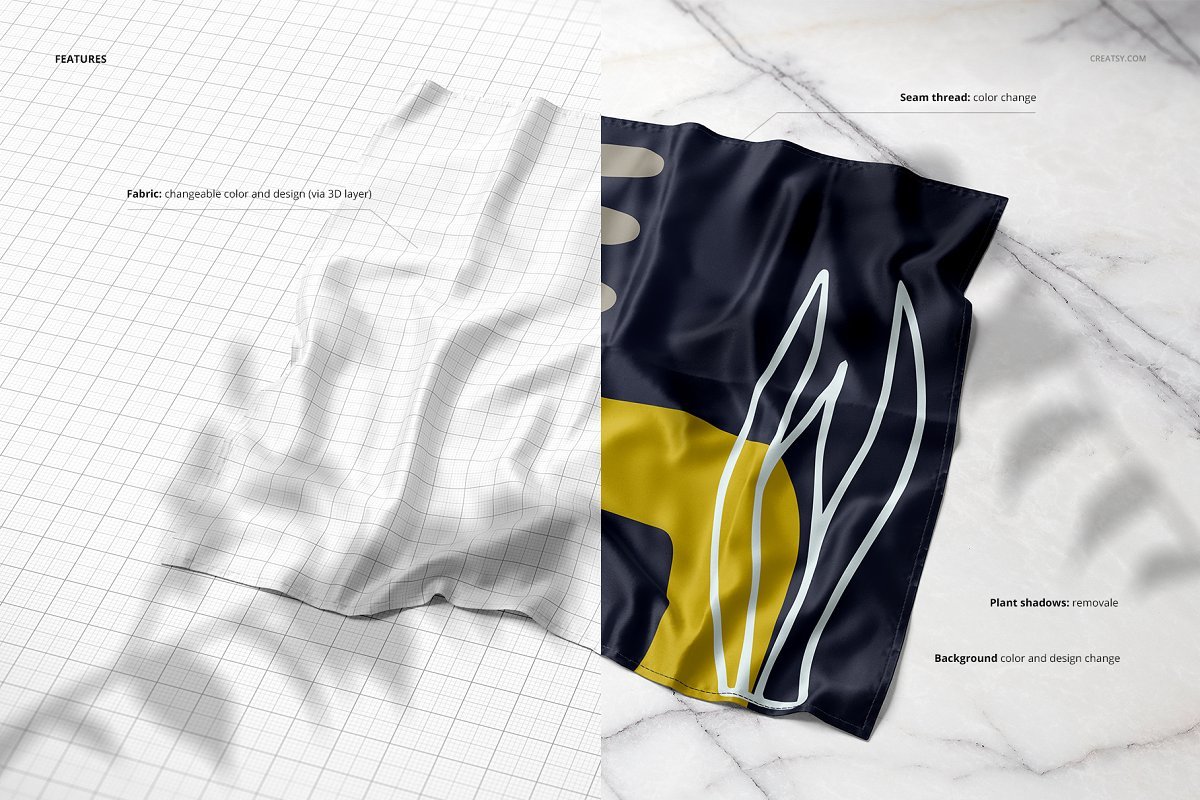 方形丝绸模板层,可编辑的.psd文件,可通过编辑智能对象和颜色层来展示您的自定义设计。