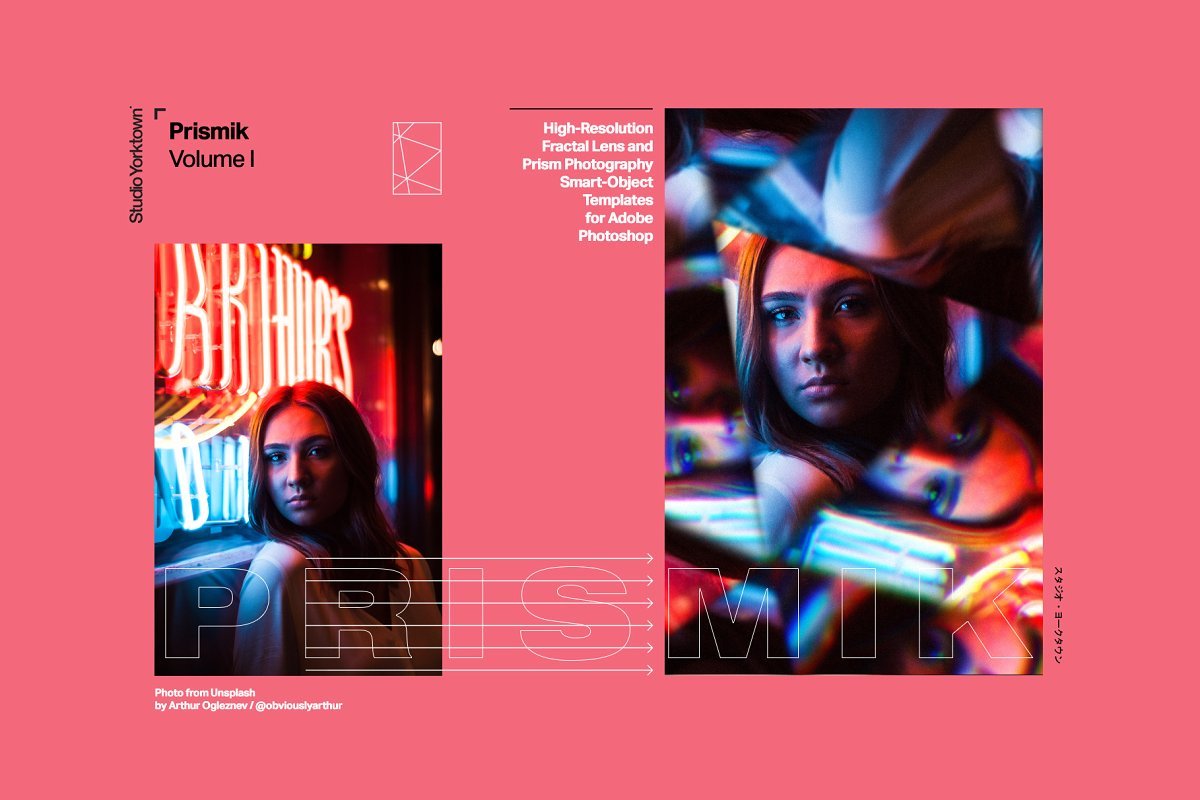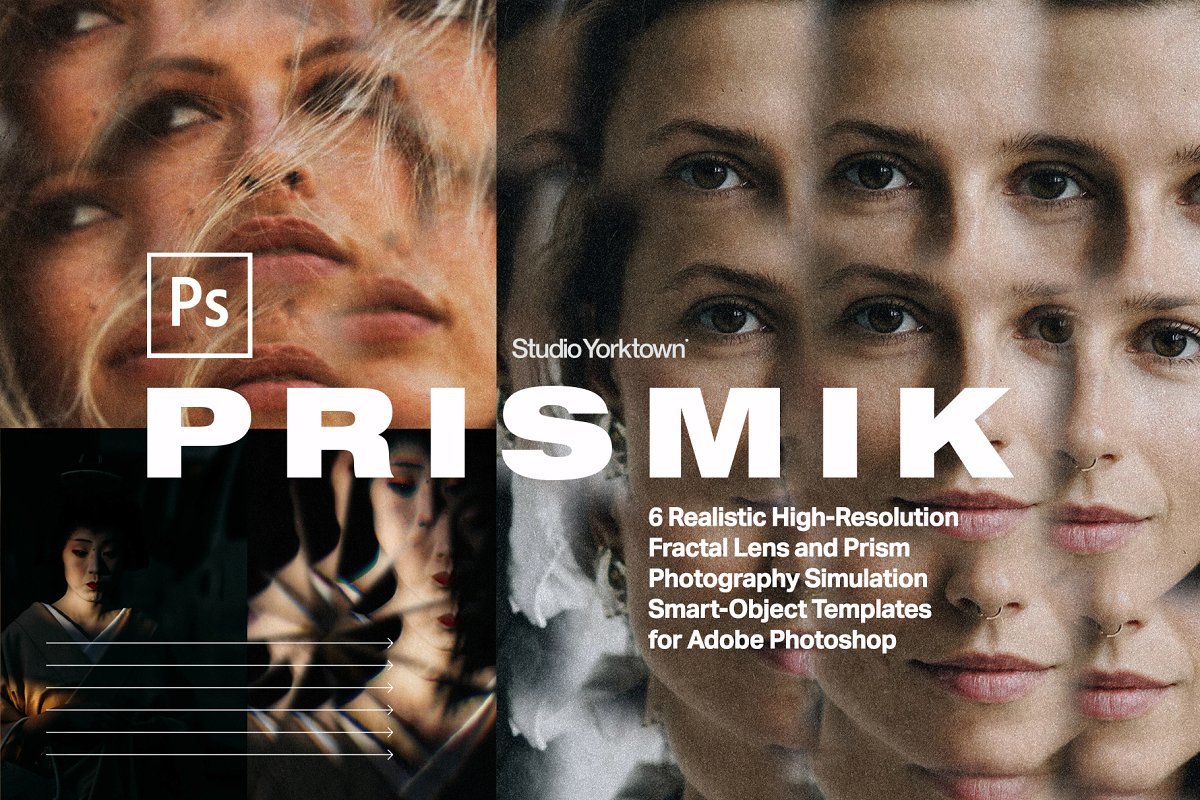 Prismik是一组6个Photoshop模板,可真实模拟通过棱镜,万花筒和各种玻璃物体进行的拍摄,将您的图像提升到一个全新的水平。