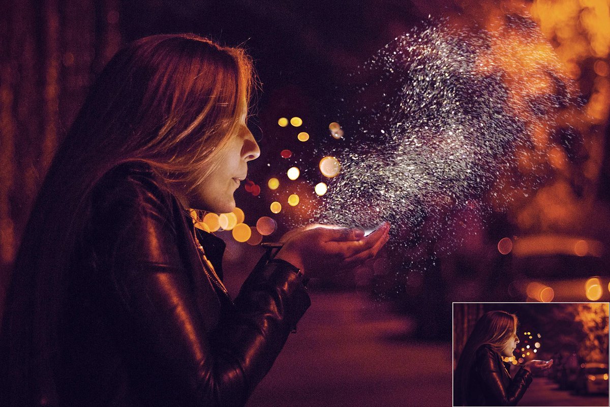 在移动设备上,您可以使用任何适用于多层图像的程序(Adobe Photoshop Mix,PicsArt等)。要为照片添加效果,您必须在图像上放置一个叠加层,然后将混合模式更改为“屏幕”。
