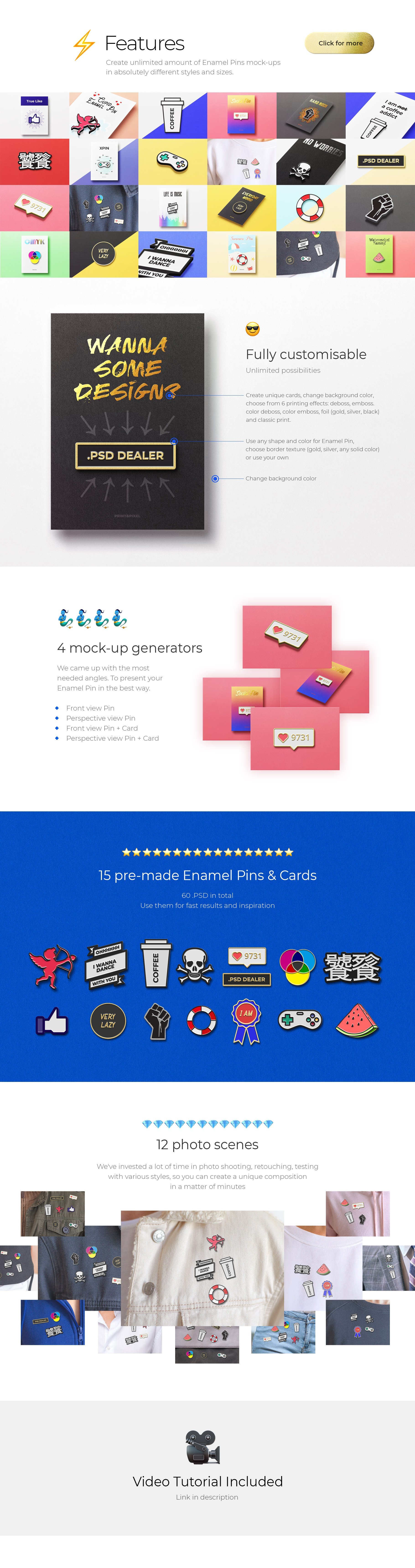 有了这个捆绑包,您可以获得4个角度的3D搪瓷图钉生成器,4个角度的15个预制图钉和卡(总共60个.PSD实体模型)和12个照片场景。比正常价格节省200美元以上。我们在照片拍摄,润饰,各种针脚设计测试上投入了大量时间,以达到更高的真实感。创建数量不限的样式和尺寸完全不同的图钉和卡片。节省您的钱-一个文件-极大的可能性。