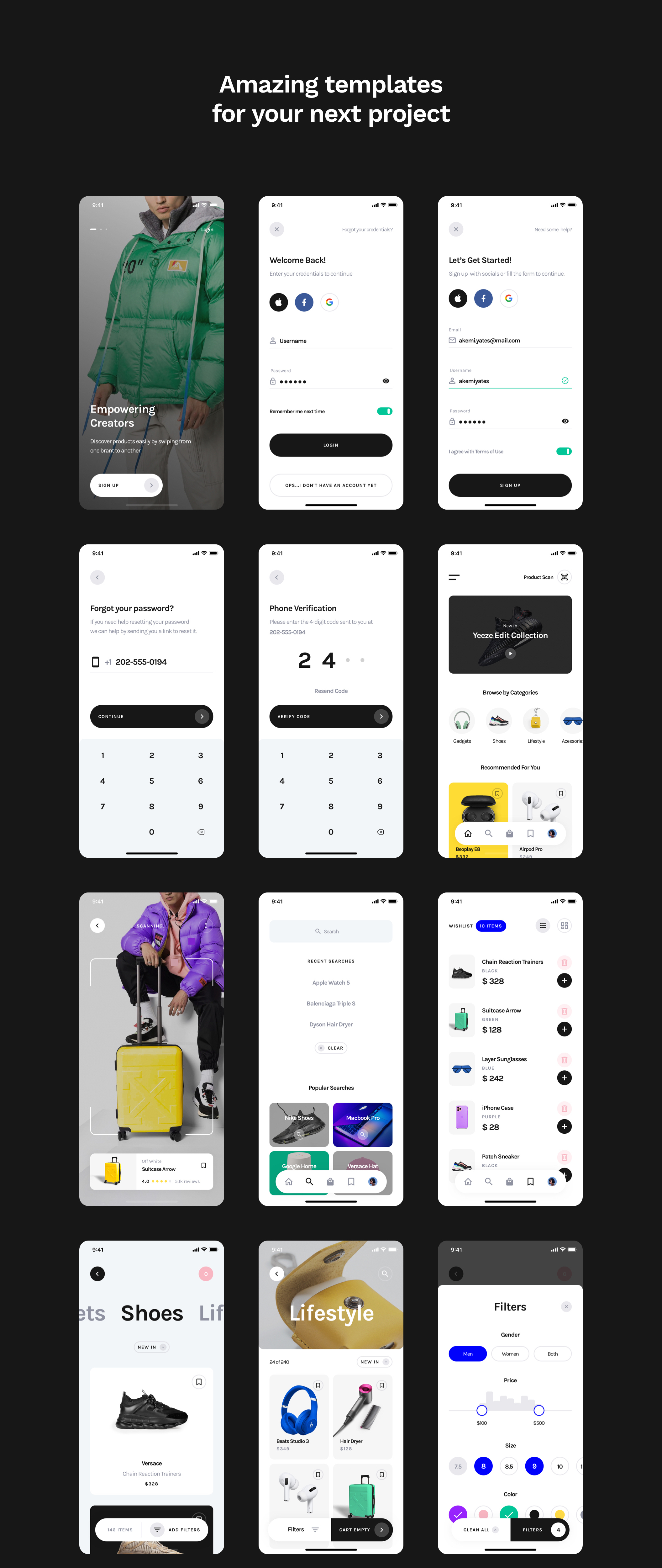 存储基于Yle Starter UI Kit的Mobile UI Kit。旨在加快您的创作过程,在明亮和黑暗模式下拥有30多个设计精美的屏幕,目前共有60个屏幕。