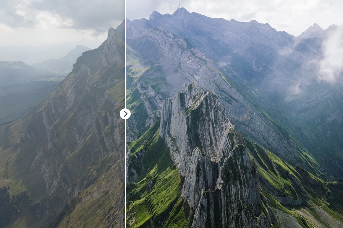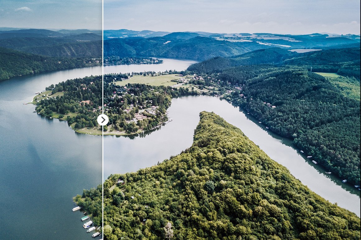 这套Lightroom预设是专门为航拍而开发的,如DJI Mavic Pro / Air,DJI Spark或流行的DJI Phantom。这些预设可用于多种景观类型,并且适合一年中的所有季节。特别注意了湖泊,河流和海洋的蓝色调,以及森林,田野和草地的丰富多样的绿色。