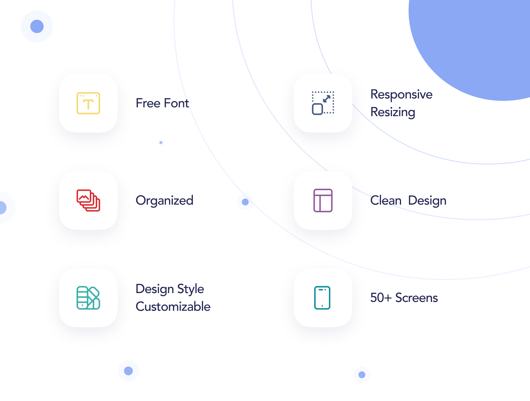 每个屏幕都设计得简单而引人注目。它包括基于矢量的完全可自定义的组件。我们使用4-8像素的设计网格来确保每一步的精确执行。所有层均组织良好,可加快您的设计过程。