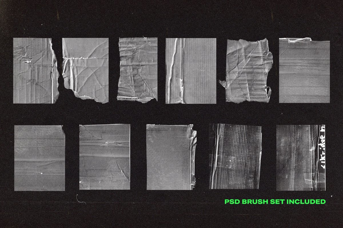 我很高兴介绍我的苦恼纸板纹理套装。它由11种不同的纸板纹理组成。这些纹理以600 DPI进行扫描,并在Photoshop中进行微调以获得最佳效果。这些图形来自心疼和磨损的硬纸板片。一些切口是手工制作的,但总的来说,我尽力使边缘保持粗糙并撕开发现的方式。它们非常适合需要硬纸板外观的任何项目。