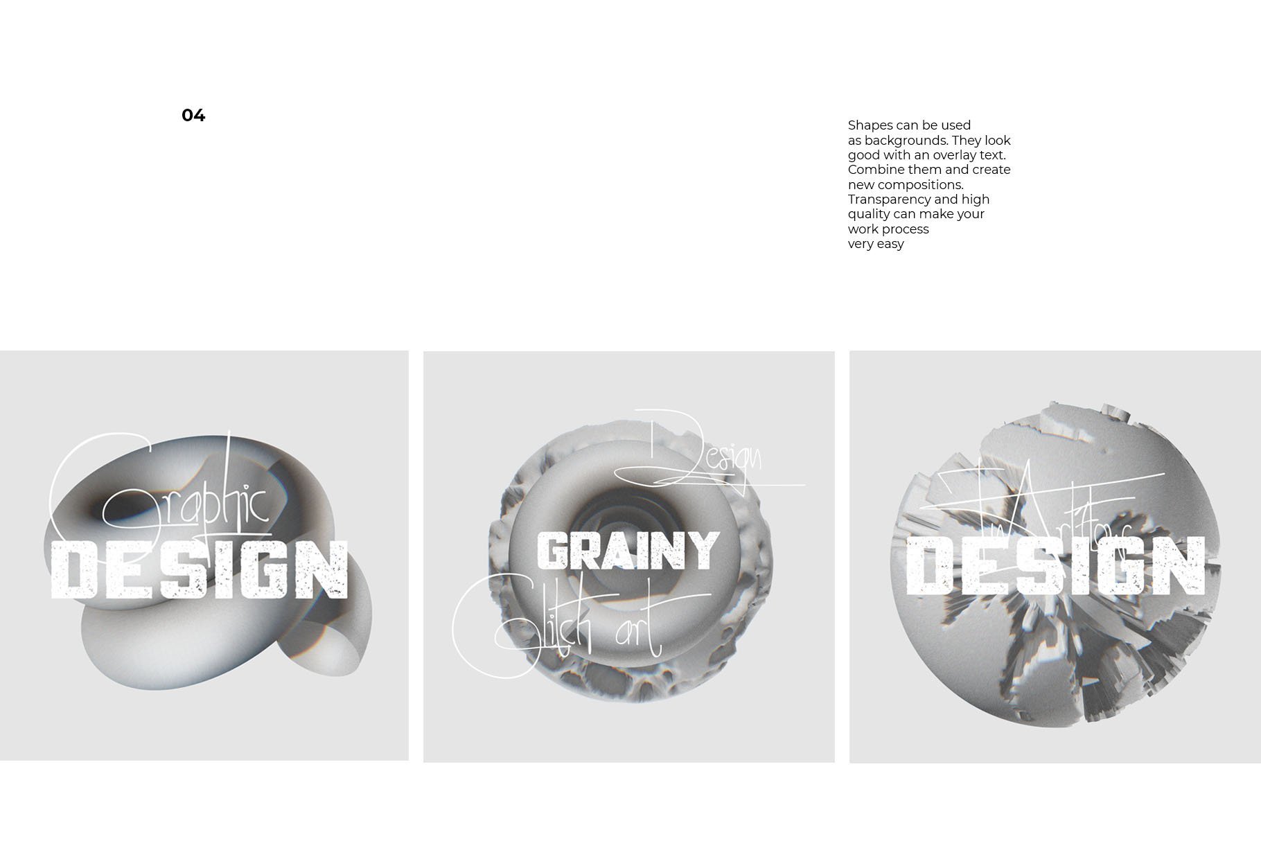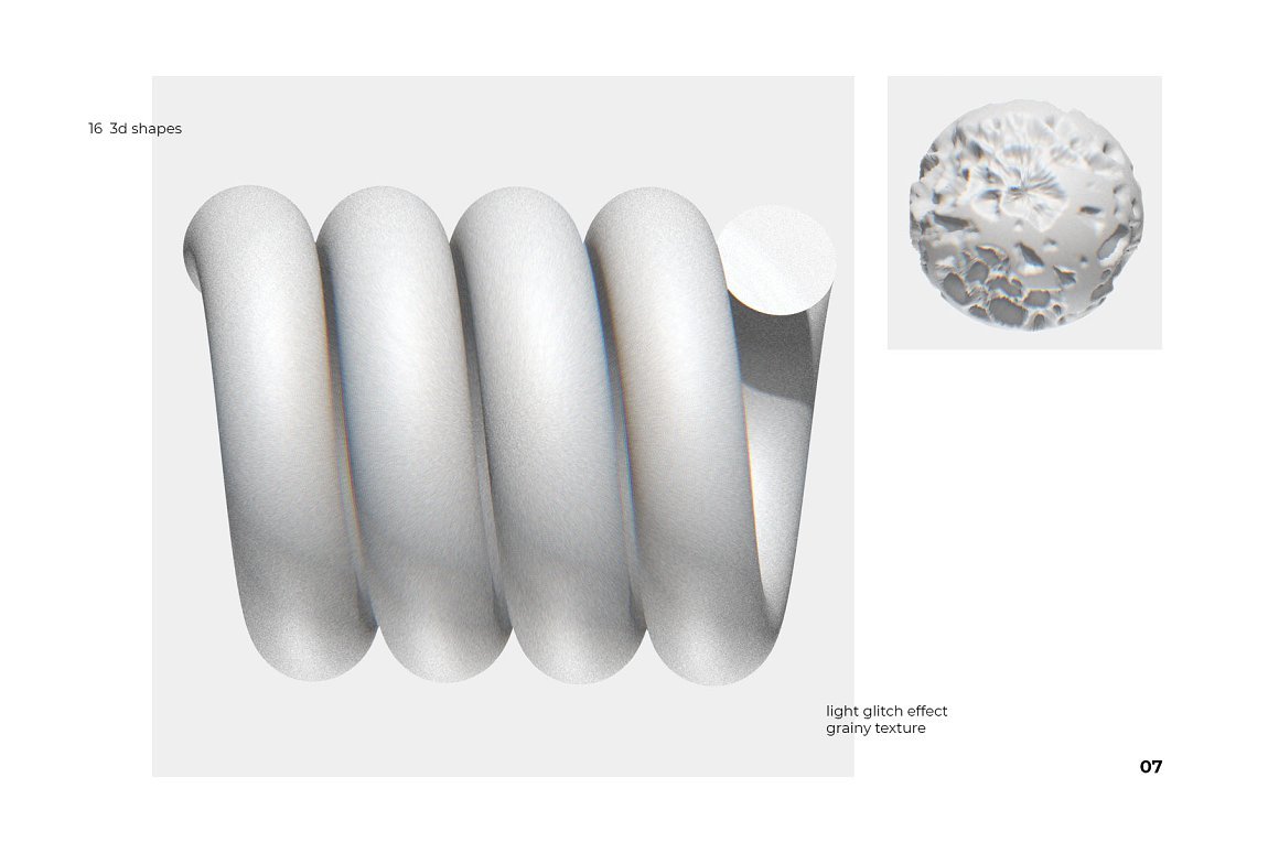 有16个3d形状的集合,具有嘈杂的纹理和轻微的毛刺效果。