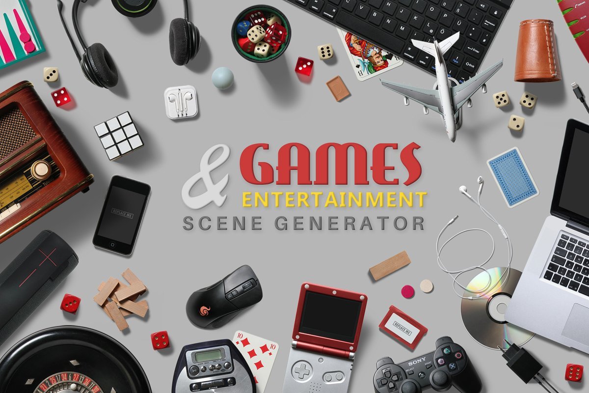 此场景生成器涉及经典游戏以及电子游戏和娱乐小工具。只需拖放项目即可创建精彩的场景。它们可以旋转,缩放和定制。包装包括赌博物品,积木,装饰品,设备,游戏,音乐小工具等。
